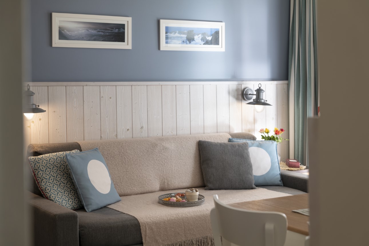 - Woonkamer: Inclusief een slaapbank met uittrekbaar bed (aanbevolen voor kinderen) of een slaapbank voor 2 personen.