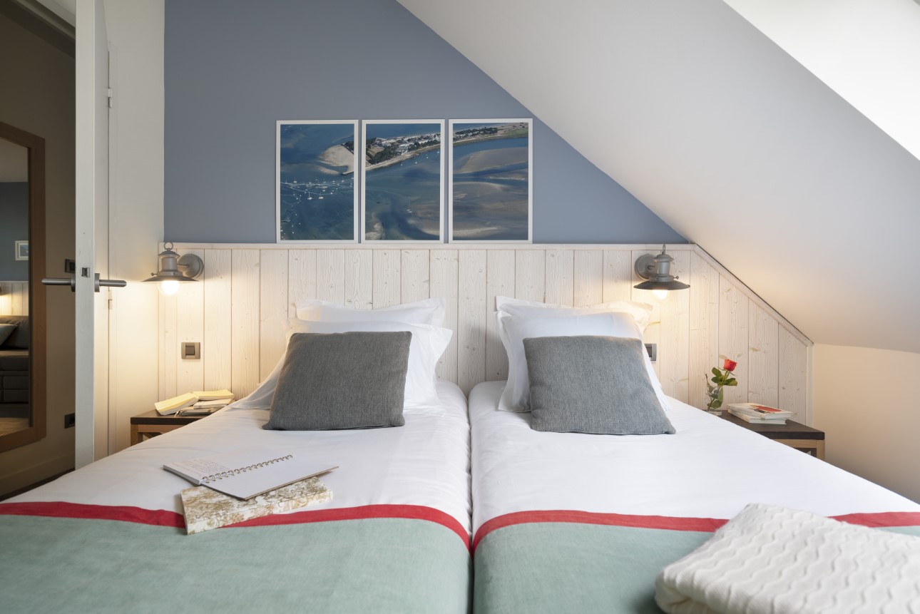 - De eenpersoonsbedden kunnen worden samengevoegd tot een tweepersoonsbed, deze optie is alleen beschikbaar in de slaapkamer en moet vooraf worden aangevraagd.