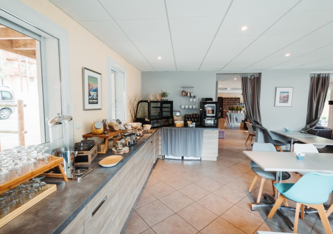 Kitchenette met kleine koelkast, elektrische kookplaten, magnetron en filterkoffiezetapparaat
