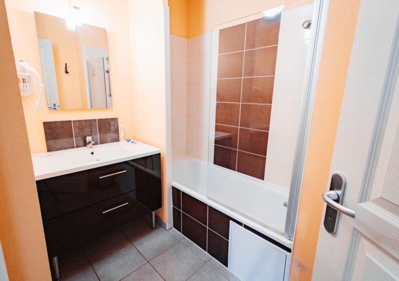 Badkamer met bad of douche, haardroger