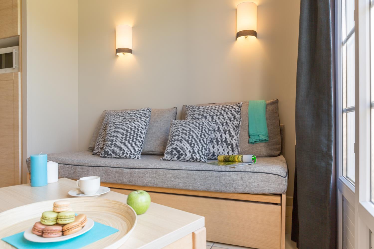 • Voorzieningen woonkamer: 1 slaapbank met 1 uitschuifbaar bed (aanbevolen voor kinderen)