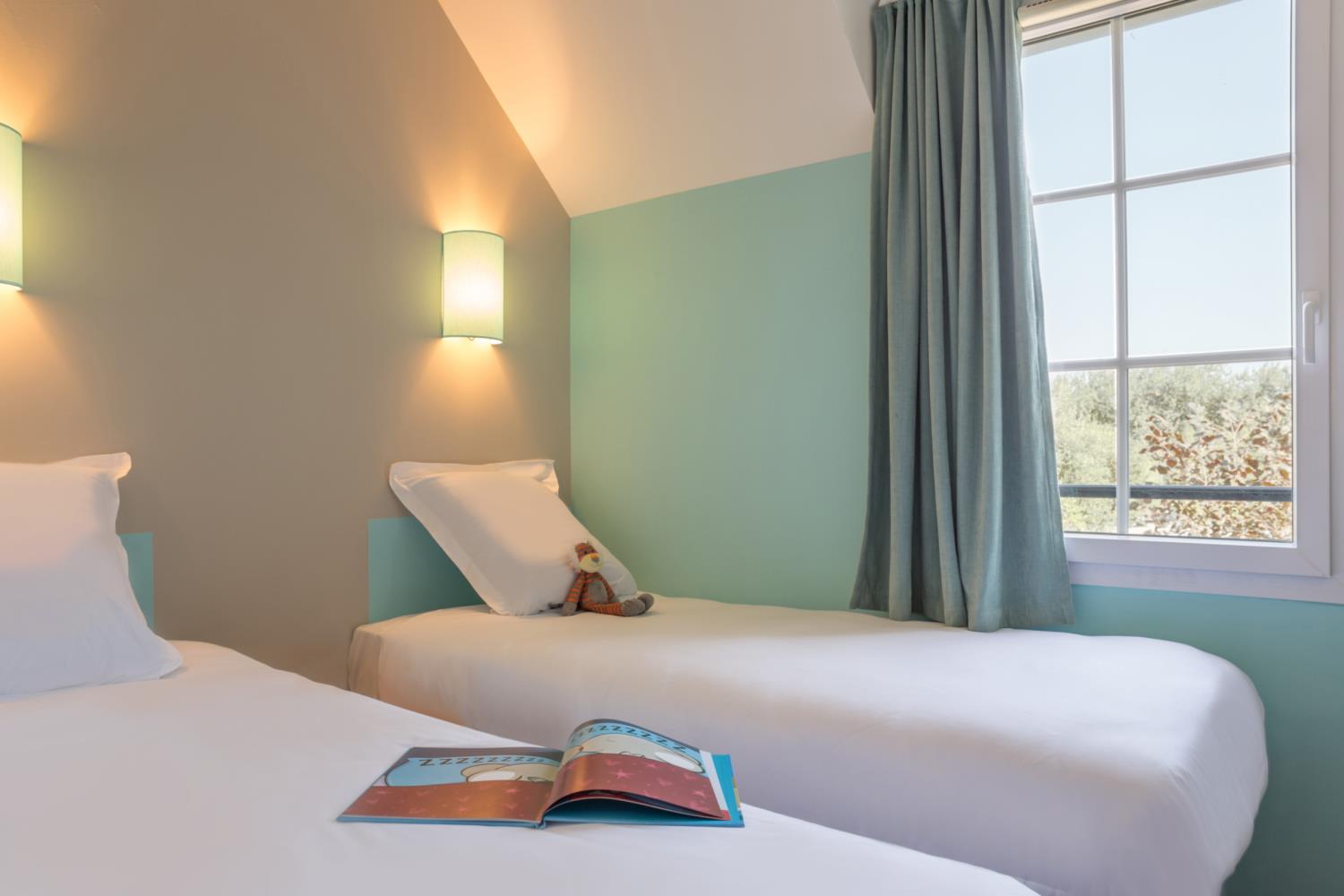 • Slaapkamerfaciliteiten: 1 slaapkamer met 1 tweepersoonsbed en 1 slaapkamer met 2 eenpersoonsbedden. De slaapkamers zijn boven.