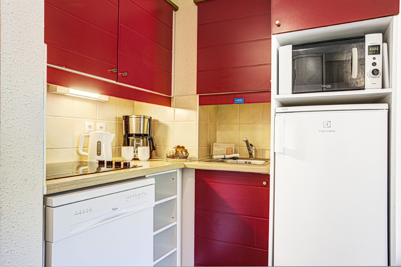 - Open, volledig uitgeruste kitchenette en woonruimte.