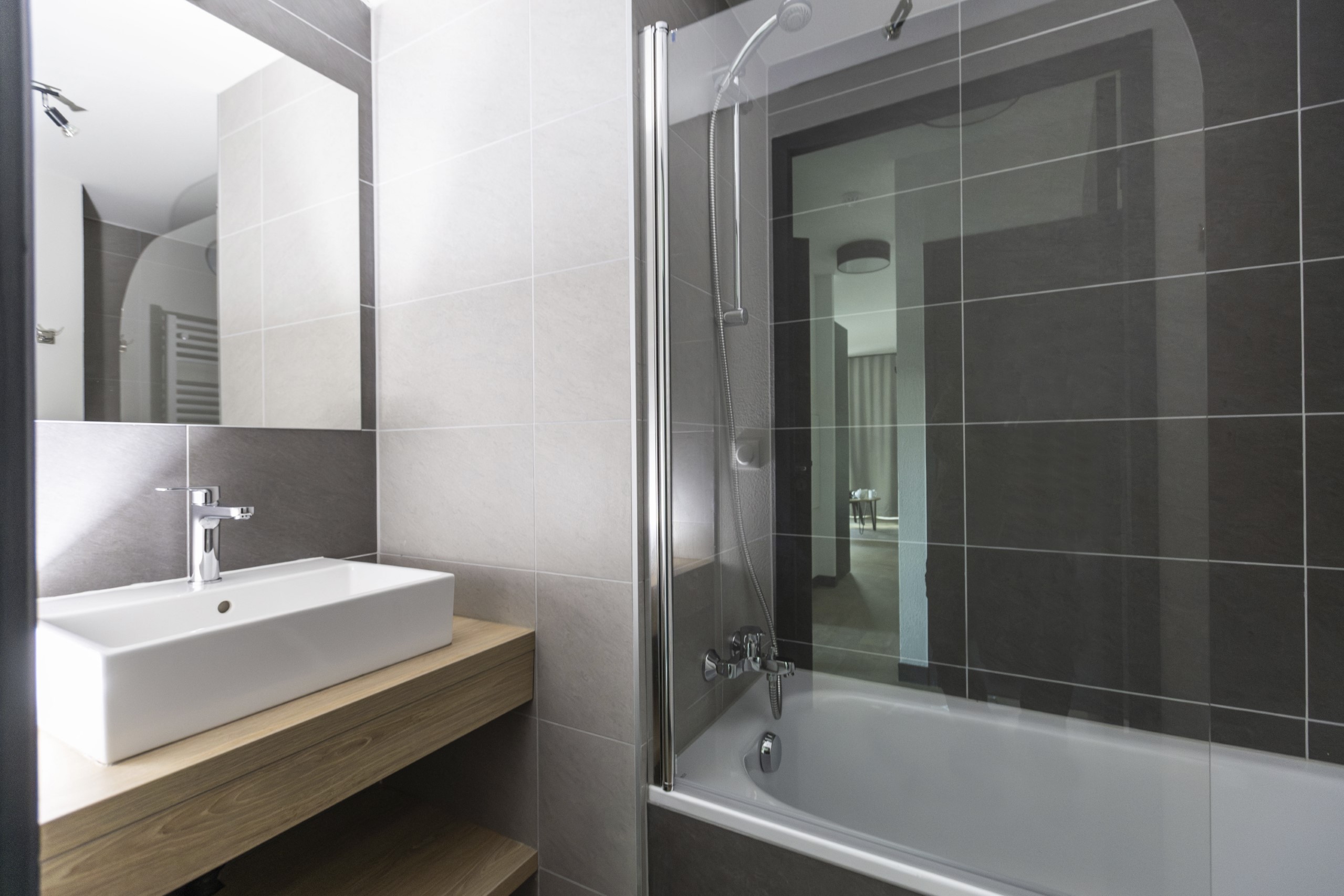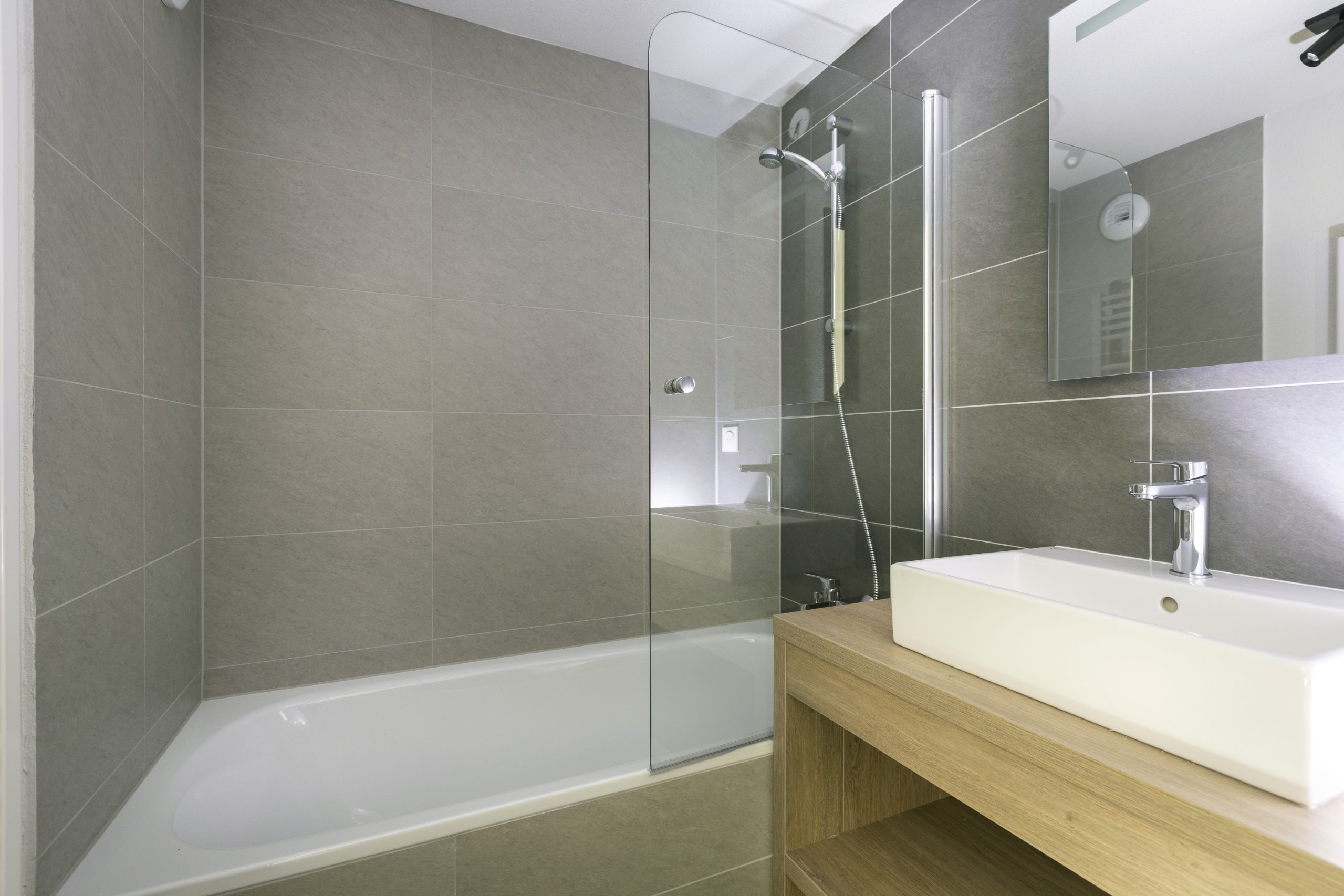 - Badkamer met bad, verwarmd handdoekenrek, haardroger en toilet