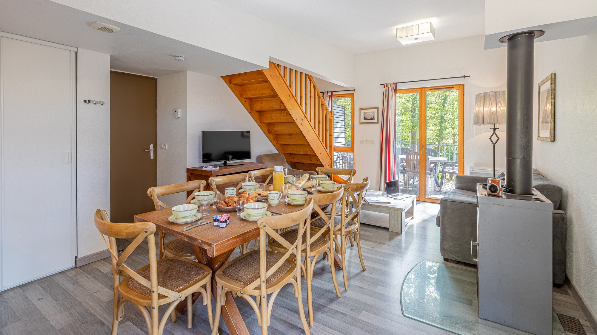 Dit geschakelde huis heeft een oppervlakte van 65 vierkante meter en is geschikt voor 8 personen. Het omvat een woonkamer met een bank en 2 uitschuifbare bedden, 2 kamers met een tweepersoonsbed of 2 eenpersoonsbedden, een slaapgedeelte met 2 eenpersoonsbedden, een keuken uitgerust met keramische kookplaat, magnetron, koelkast, vaatwasser en afzuigkap, 2 badkamers met bad of douche en 2 toiletten, vaak zijn er aparte toiletten. Het huis heeft ook een terras met tafel en stoelen.