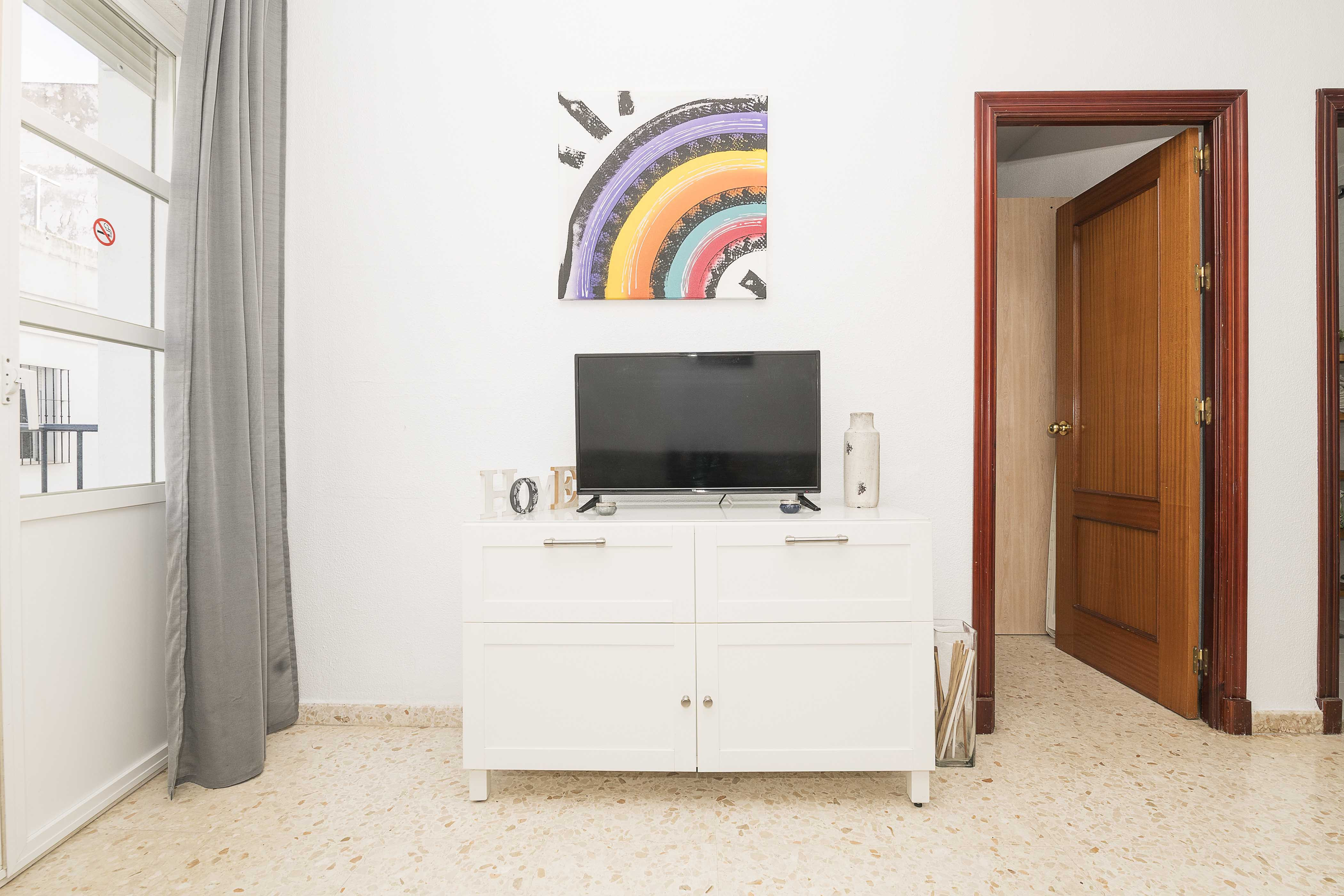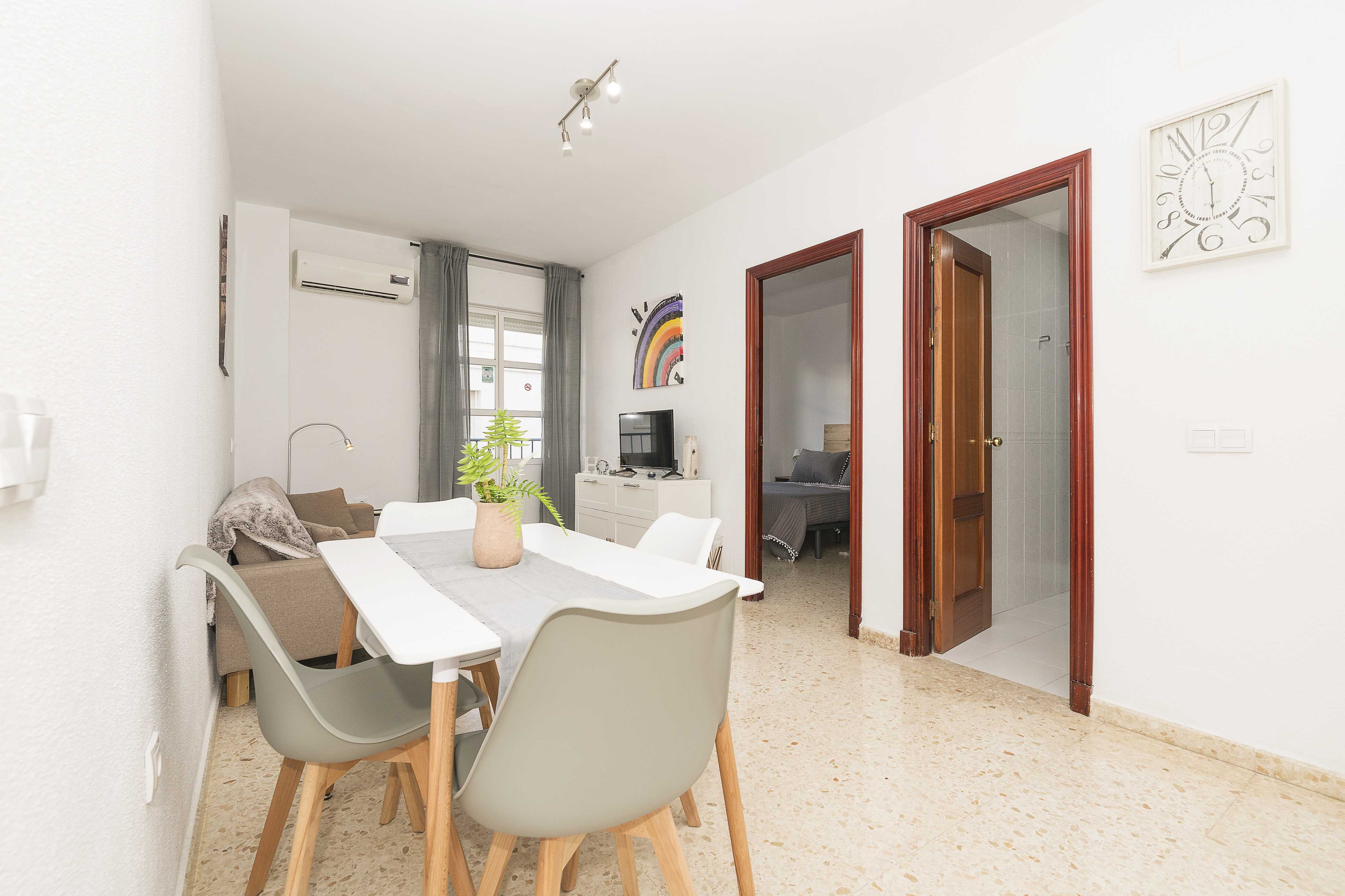 De lichte woon-eetkamer is uitgerust met een Smart TV en airconditioning - ideaal om te ontspannen na een dag sightseeing. Eén gast kan comfortabel slapen op de slaapbank.