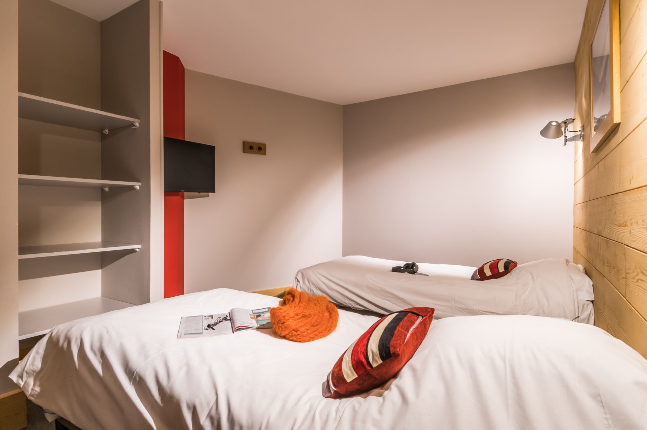 - Slaapkamer: 2 eenpersoonsbedden, waarvan één een uitschuifbaar of neerklapbaar bed is (aanbevolen voor kinderen)