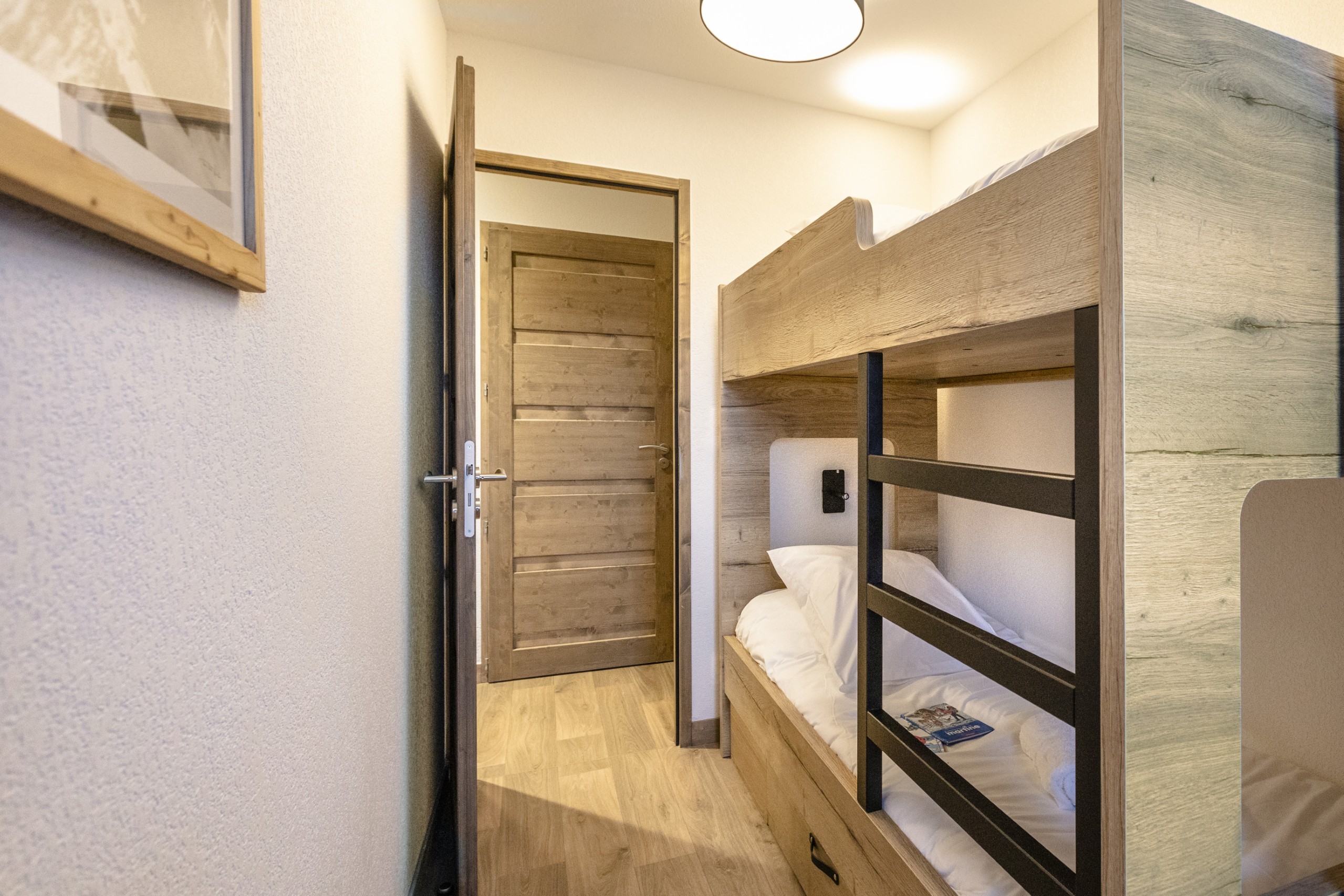 De appartementen met de classificatie 'familie' bieden een slaapkamer met stapelbedden