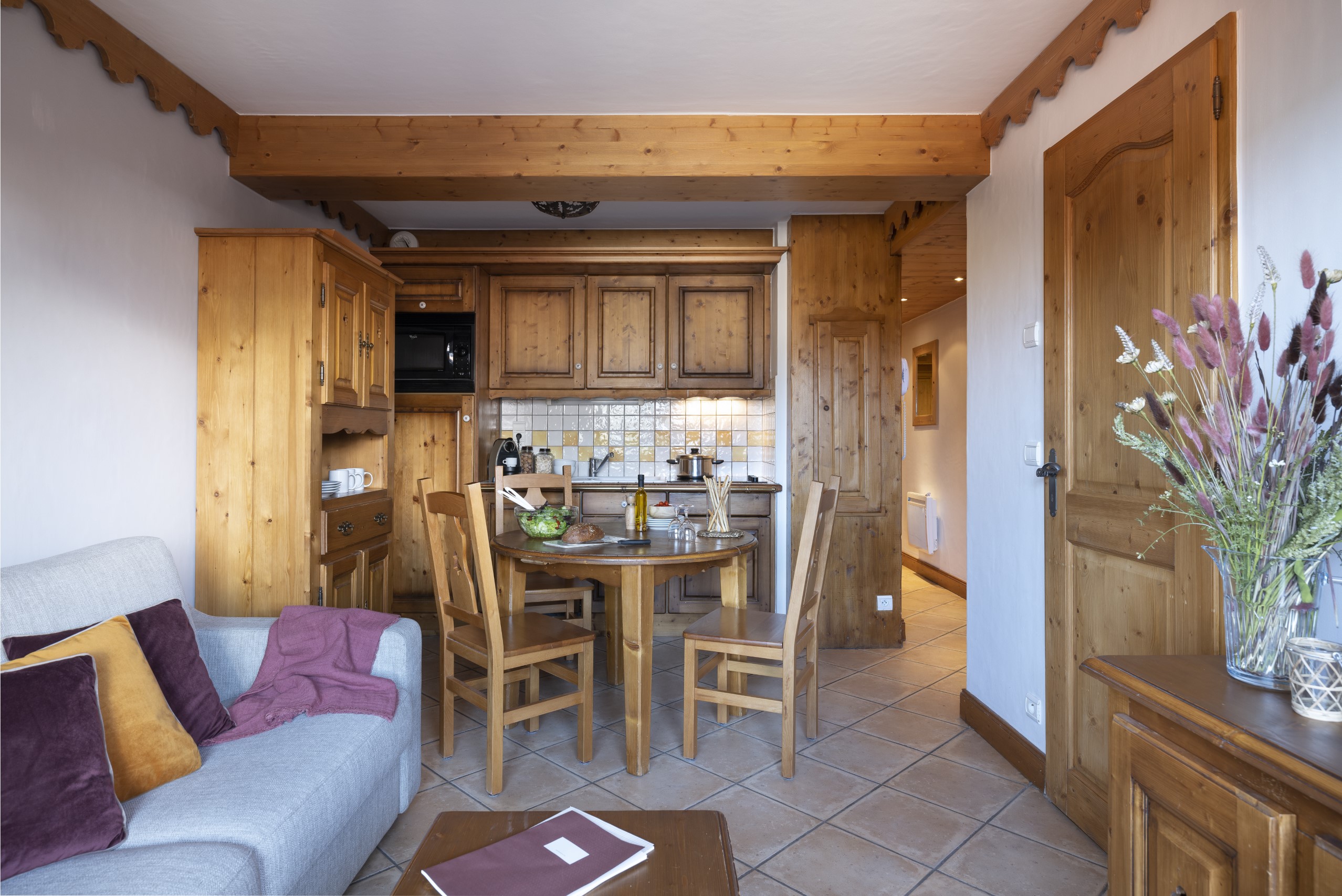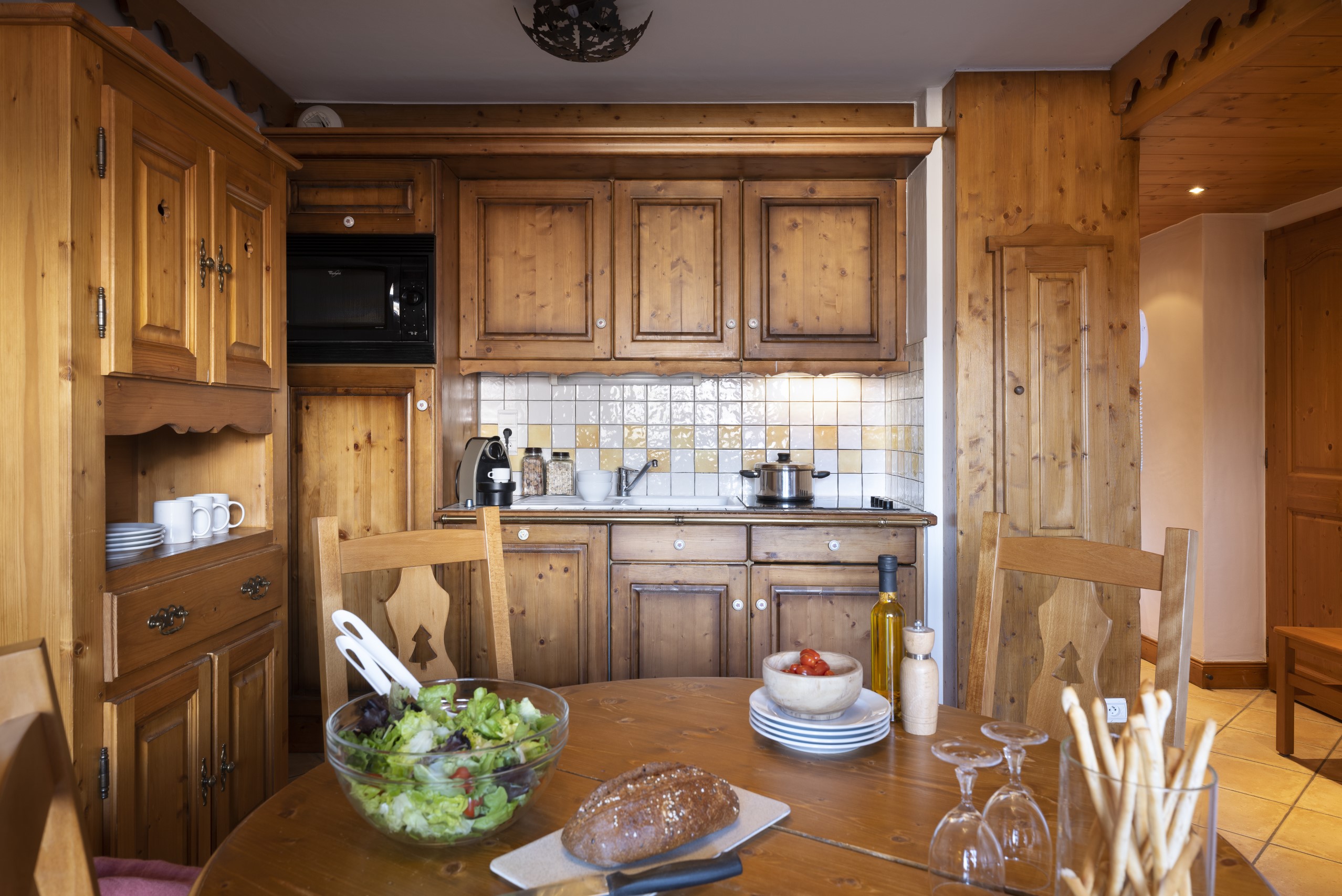 - Keukenvoorzieningen: De open kitchenette is volledig uitgerust voor uw culinaire behoeften, met een gecombineerde oven en magnetron, vaatwasser, Nespresso-koffiezetapparaat, broodrooster, en een standaard koffiezetapparaat.