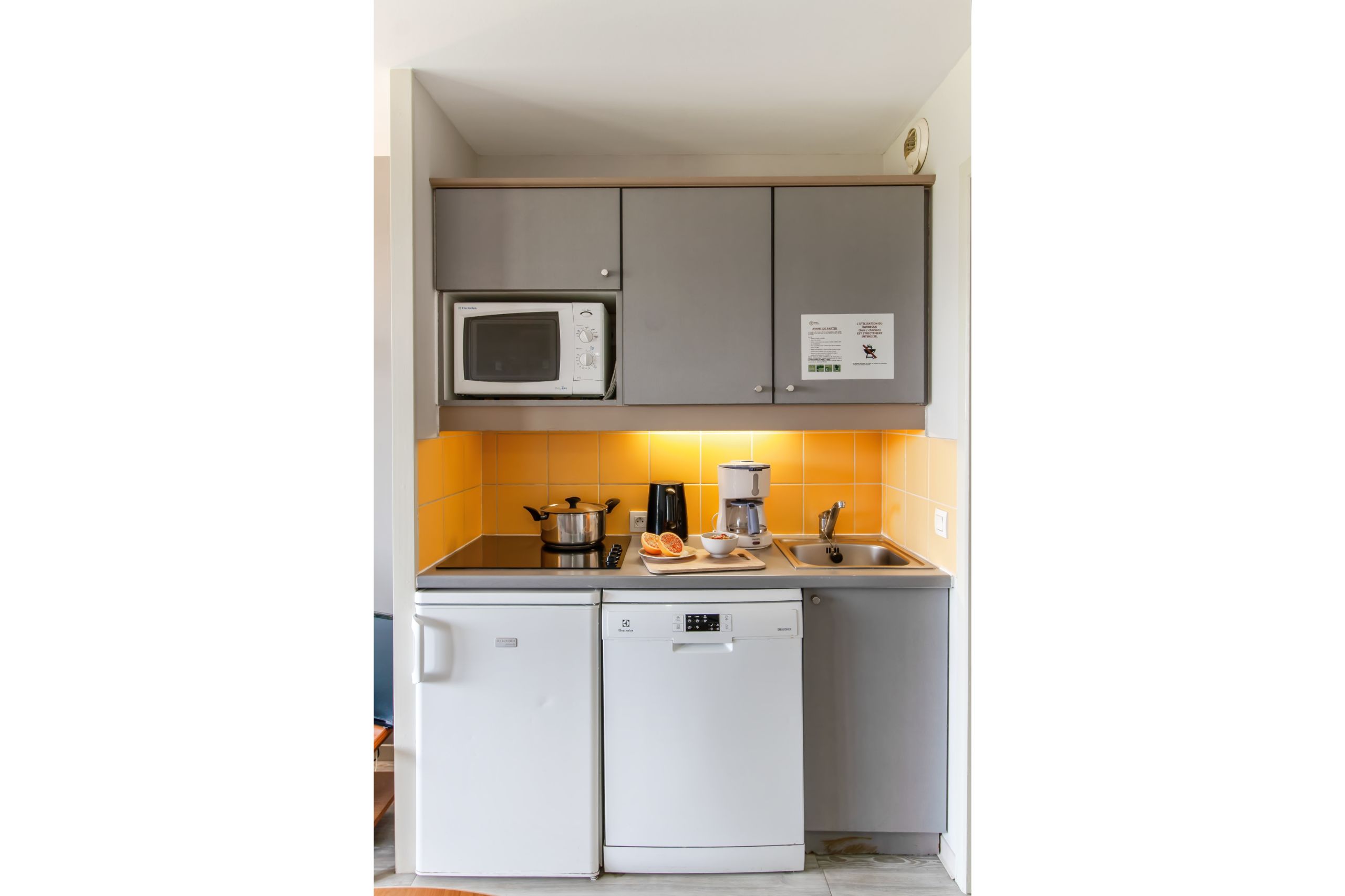 - Kitchenette: Uitgeruste open kitchenette en woonkamer.