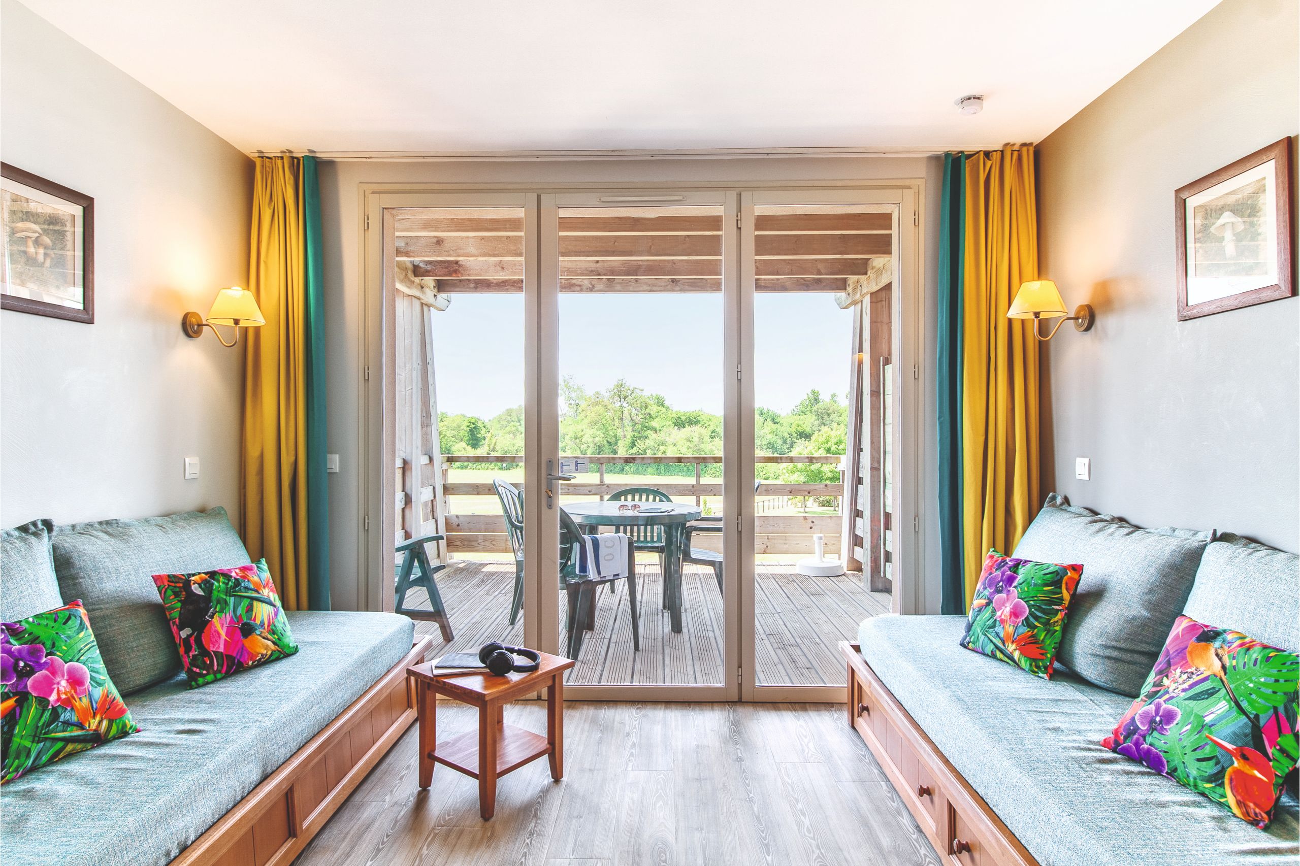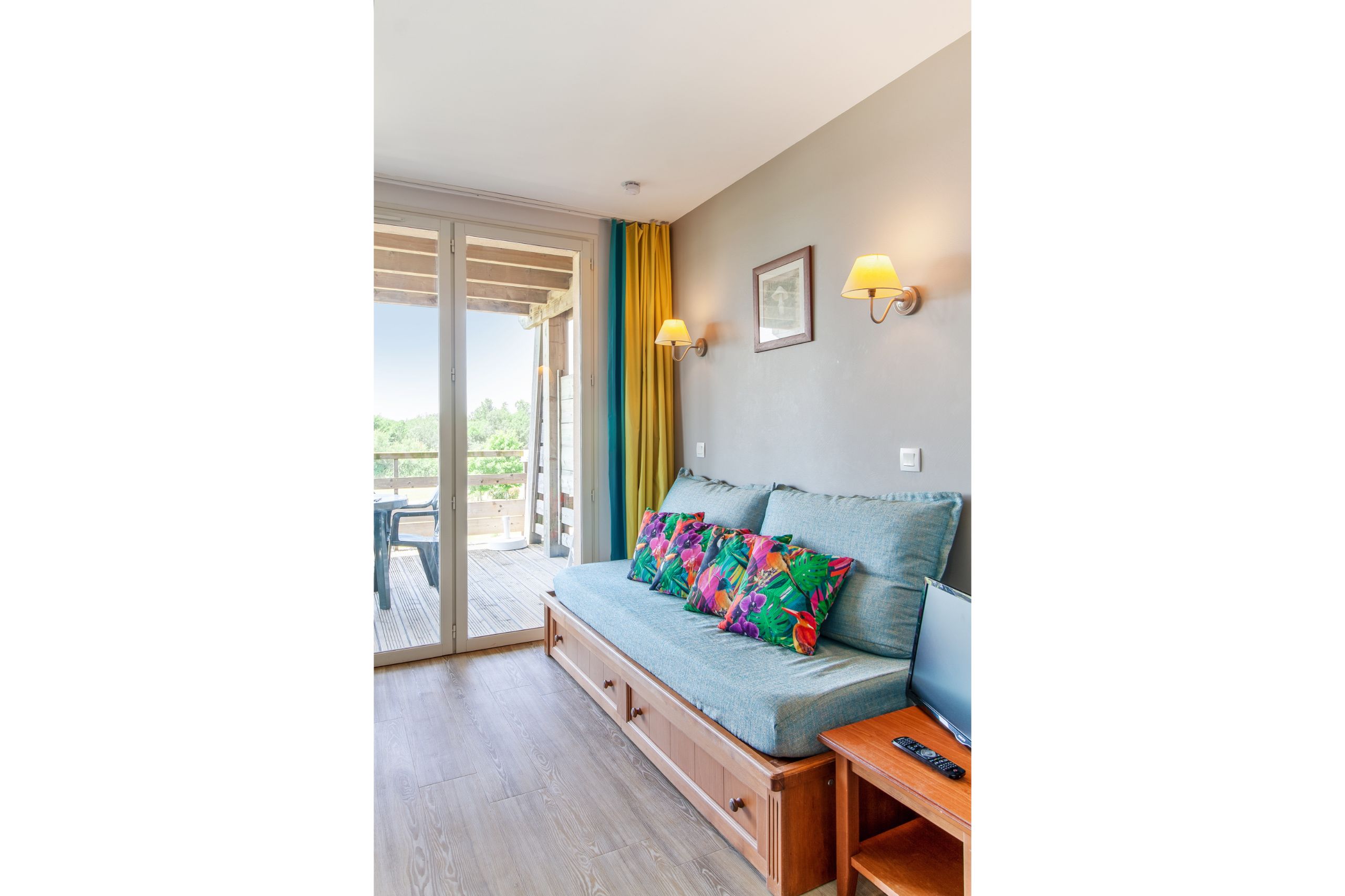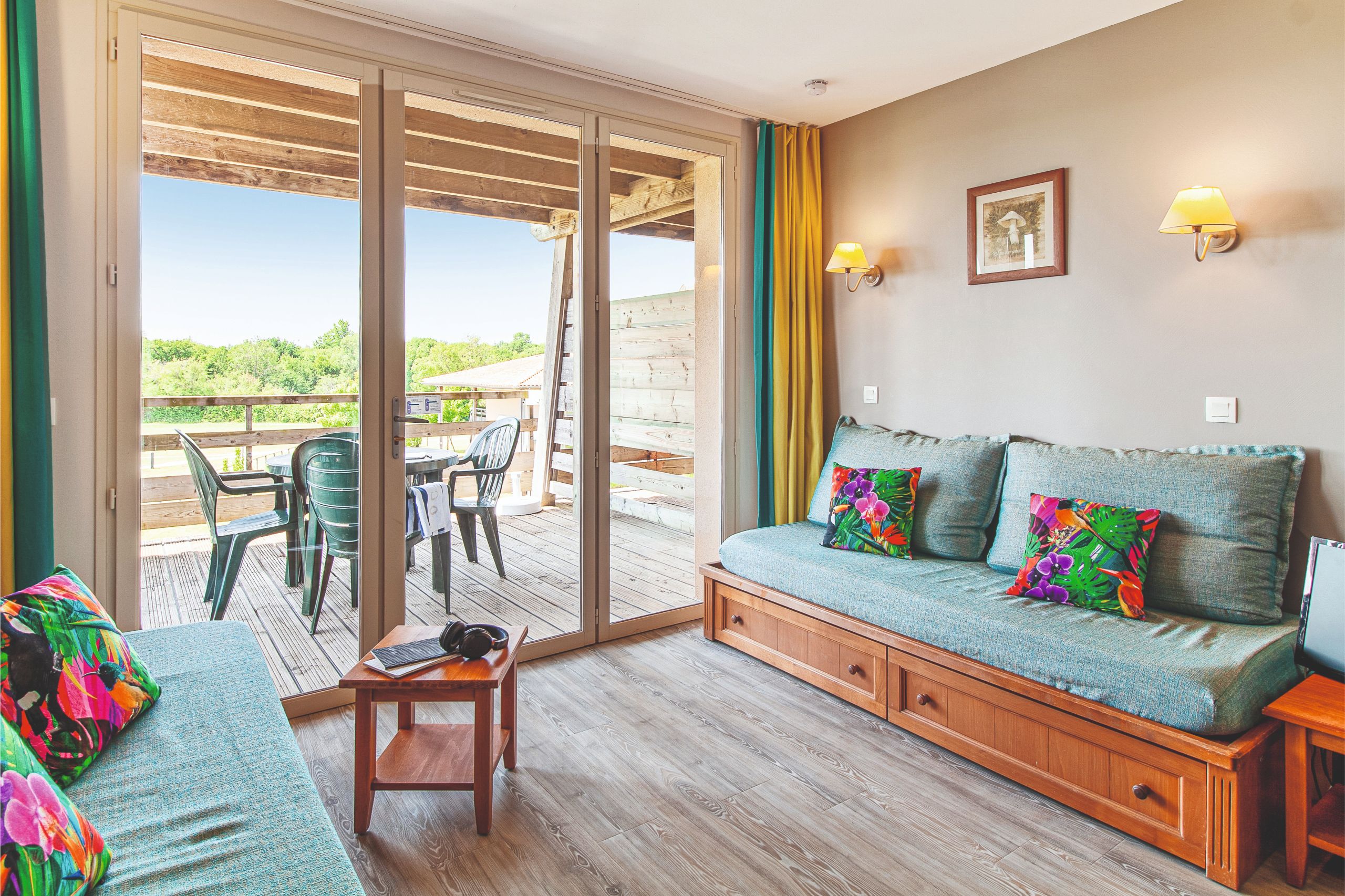 - Slaapgedeelte woonkamer: 2 daybeds, waarvan één met 1 uitschuifbaar bed (aanbevolen voor kinderen).