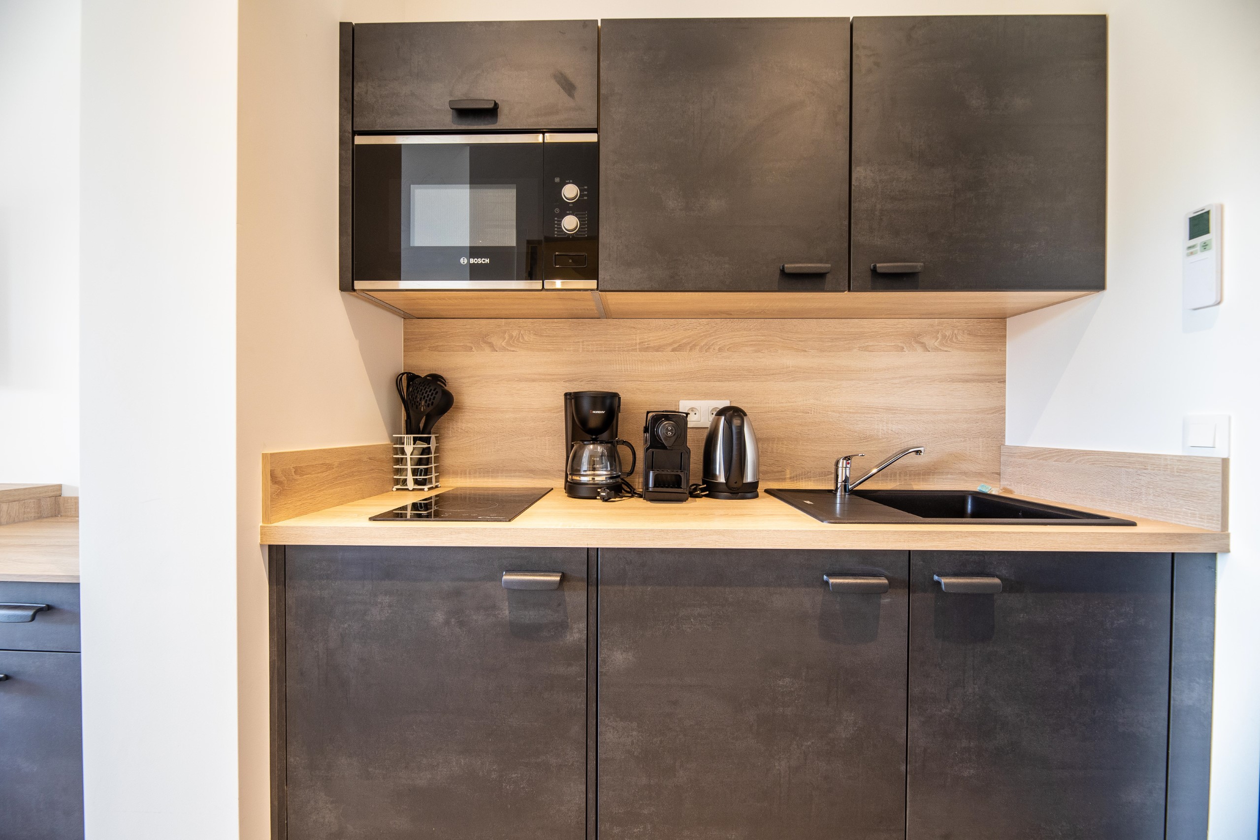 - Keuken: Uitgeruste open kitchenette (geïntegreerd met de woonruimte)