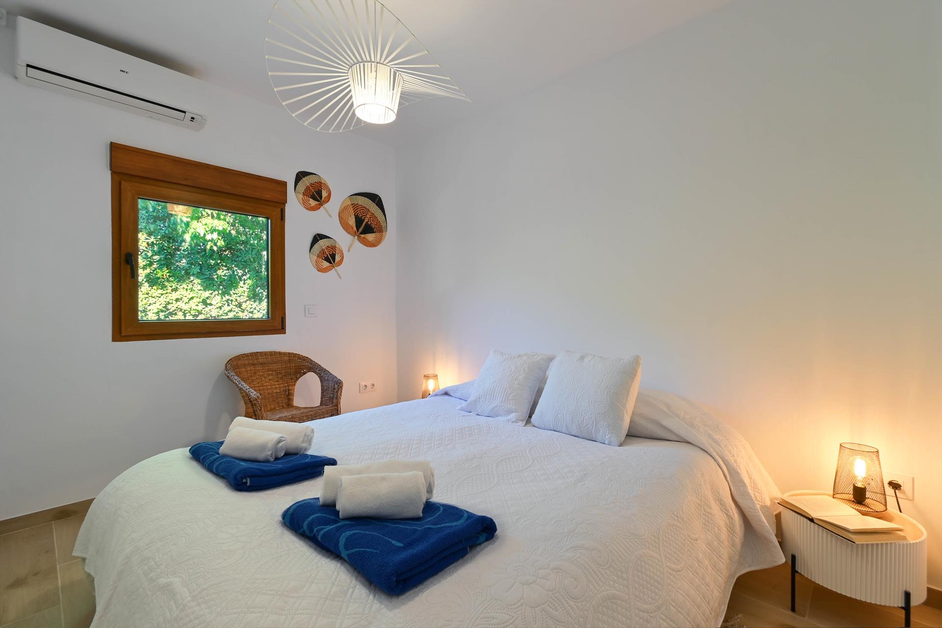 slaapkamer met airconditioning, tweepersoonsbed en badkamer en-suite