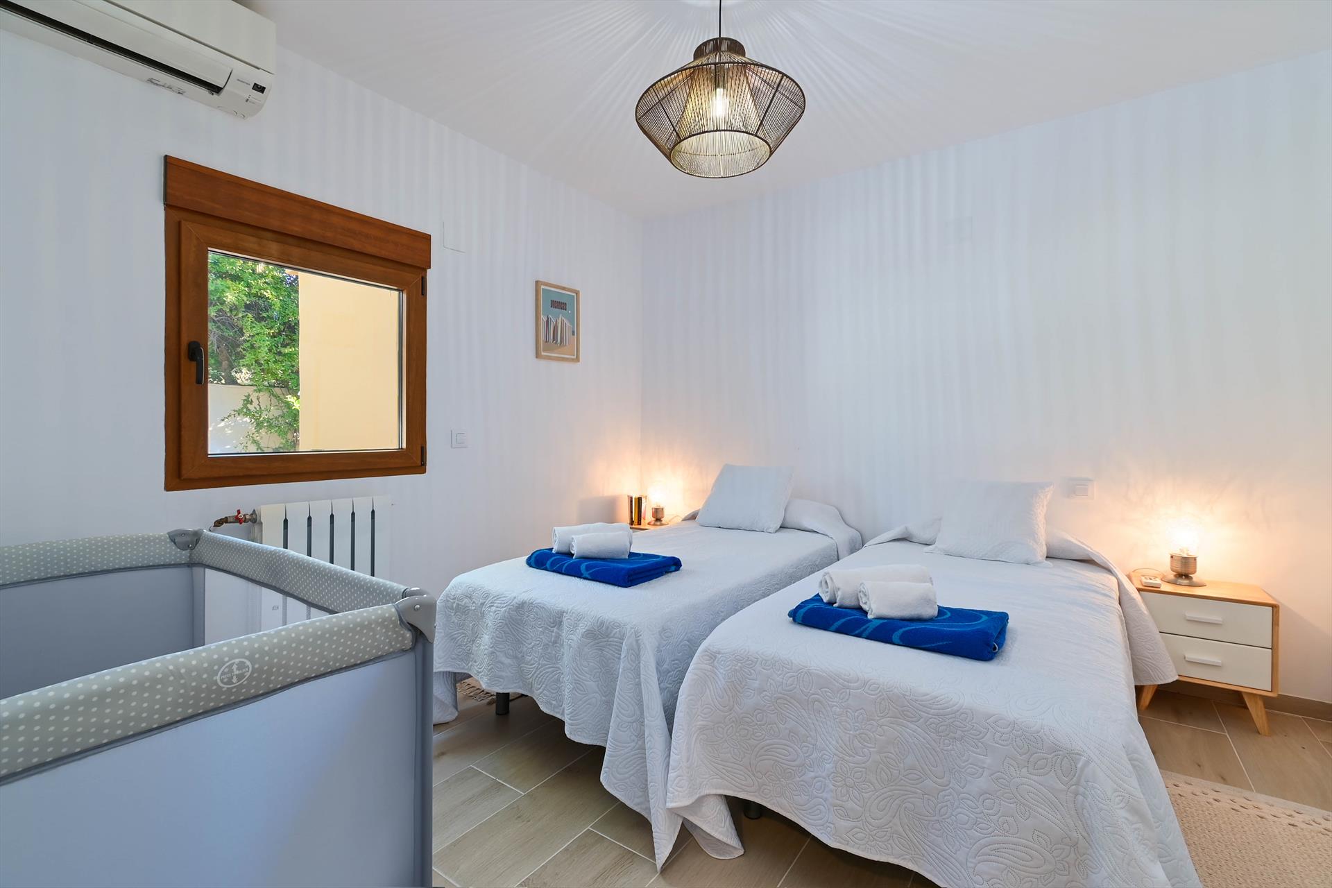 slaapkamer met airconditioning en 2 eenpersoonsbedden