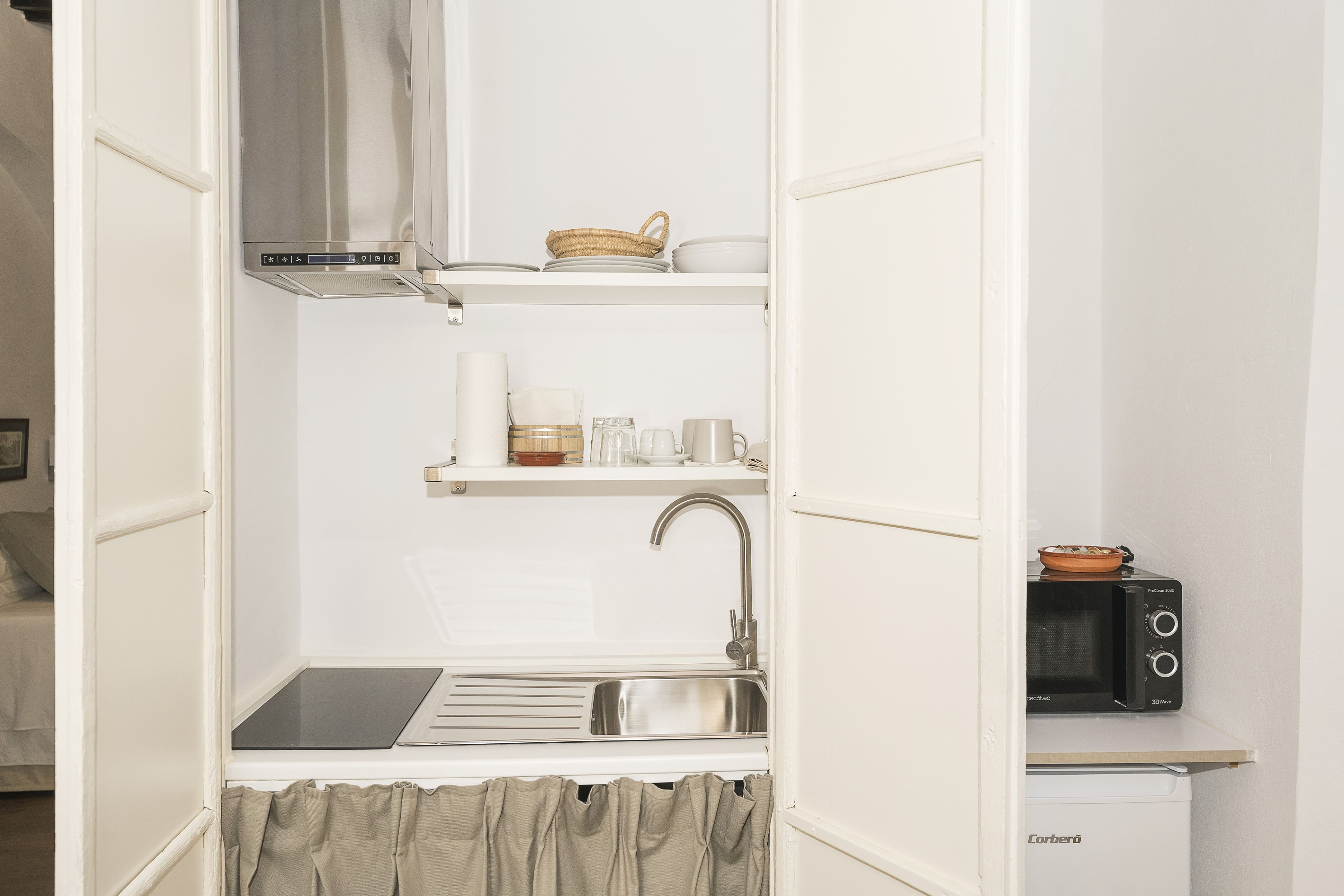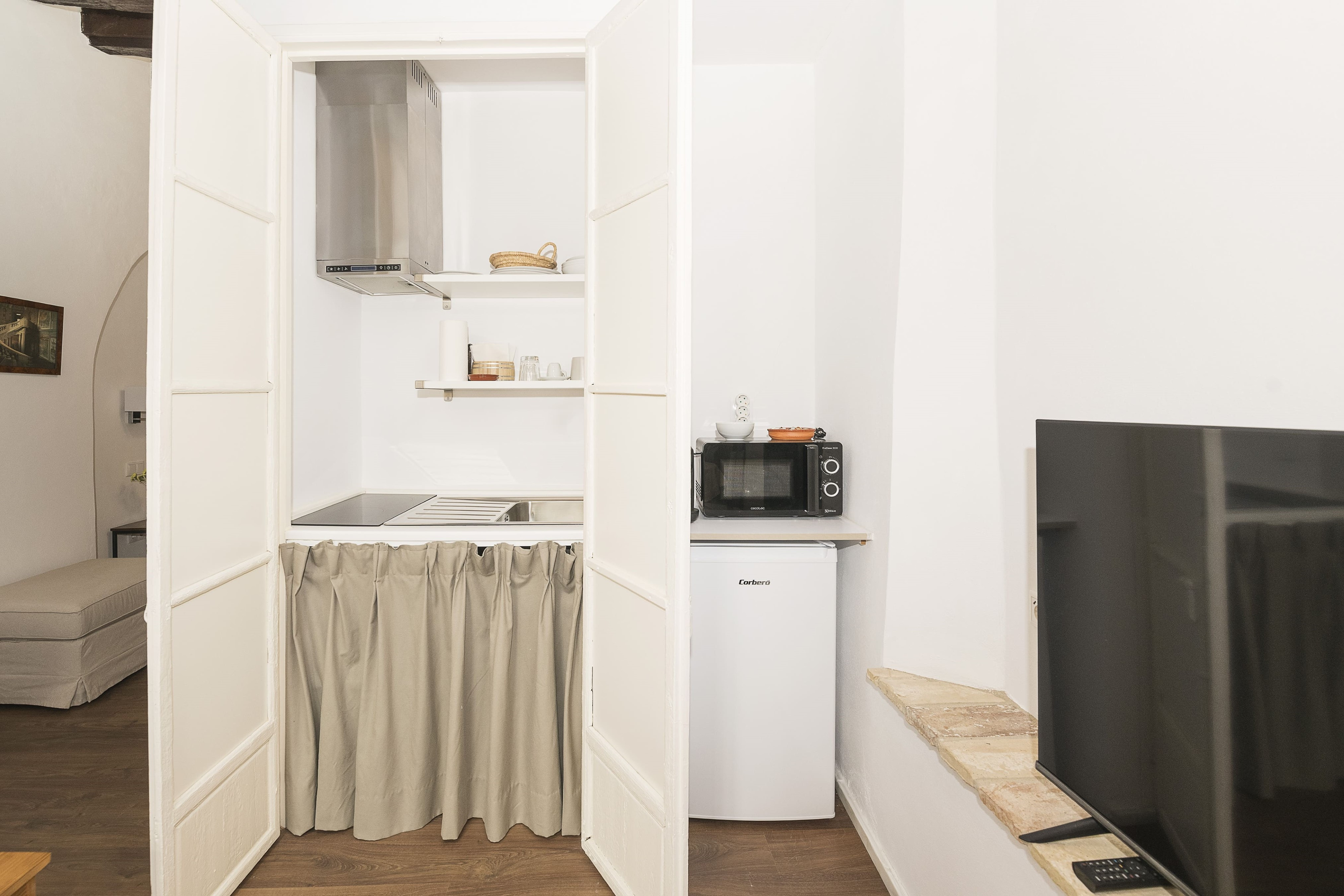 Gelegen op de begane grond van een gebouw met lift, biedt dit appartement comfortabel wonen met een open ontwerp dat elke hoek optimaal benut. Bij binnenkomst is er een gezellige ruimte die de woon-eetkamer en een kleine keuken met basisvoorzieningen combineert. De lounge is uitgerust met een Smart TV, gecentraliseerde airconditioning en vloerverwarming om het hele jaar door comfort te garanderen. Een van de gasten kan ontspannen op de slaapbank. De compacte maar volledig uitgeruste keuken heeft een keramische kookplaat en alle benodigde gebruiksvoorwerpen voor het dagelijks leven. De slaapkamer heeft een comfortabel tweepersoonsbed en een kledingkast voor het opbergen van persoonlijke spullen. Een volledige badkamer met douche maakt het appartement compleet. Als u met een kind reist, kunnen wij een babybedje en kinderstoel voorzien. Er is ook een strijkijzer en strijkplank beschikbaar.