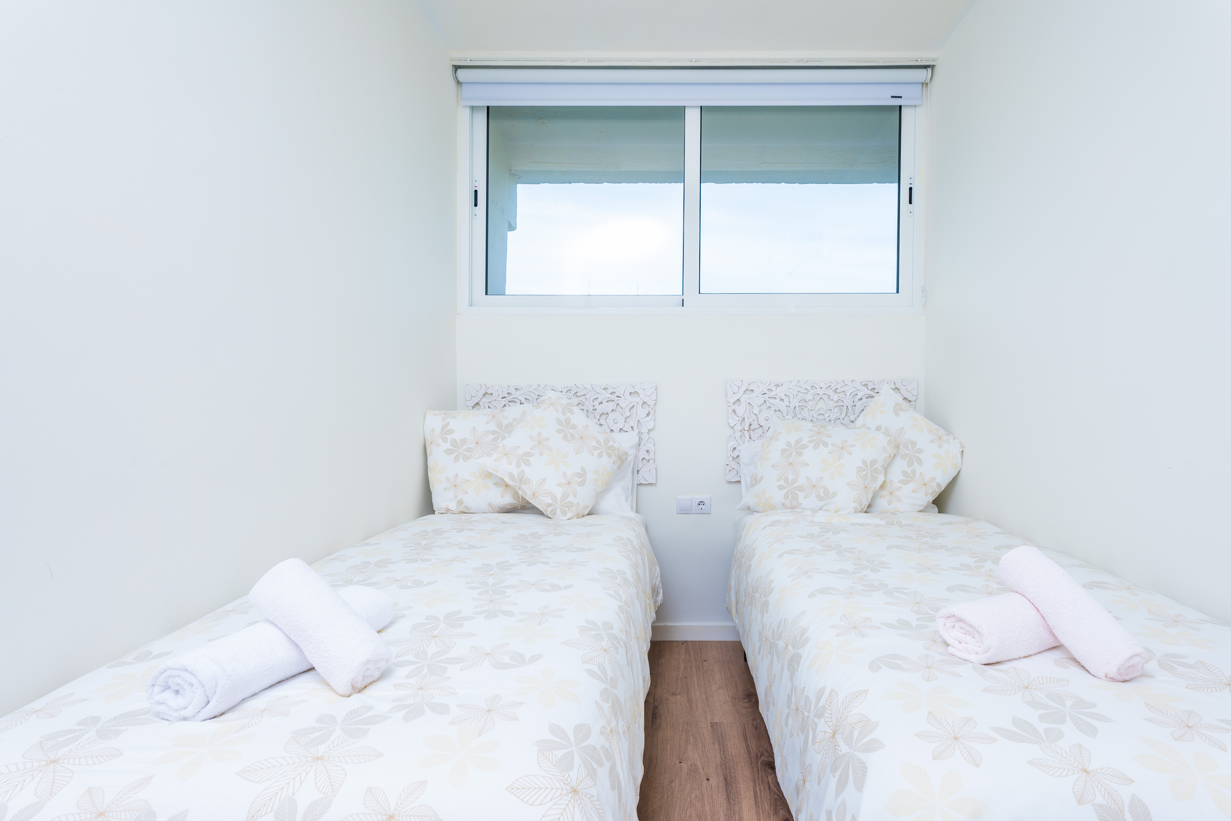 De slaapgelegenheden omvatten één slaapkamer met twee eenpersoonsbedden, en er is een andere kamer die wordt gebruikt als studeerkamer. Beide kamers zijn voor uw gemak voorzien van kledingkasten. Een complete badkamer met een douche bedient het hele appartement.