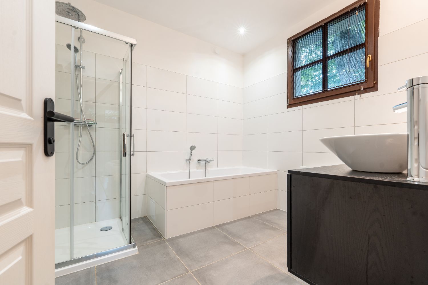 Voor ultiem comfort heeft de begane grond een ruime hoofdslaapkamer met een luxe en-suite badkamer die een bad, douchecabine en dubbele wastafel omvat. Boven vindt u drie extra slaapkamers. Een van deze heeft ook een en-suite badkamer met een bad, douche en dubbele wastafel, terwijl de andere twee slaapkamers een derde aparte badkamer delen met een douche en dubbele wastafel. Een tweede apart toilet is ook beschikbaar voor extra gemak.