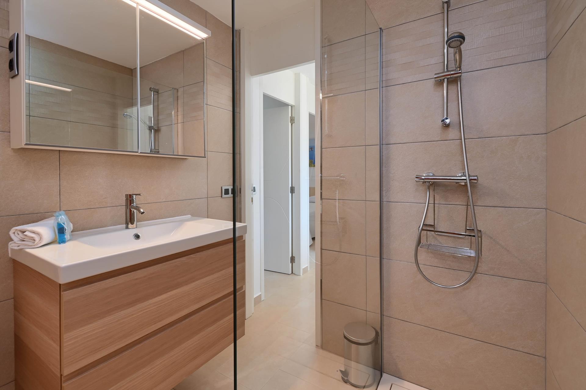 - badkamer met enkele wastafel, douche, toilet en haardroger