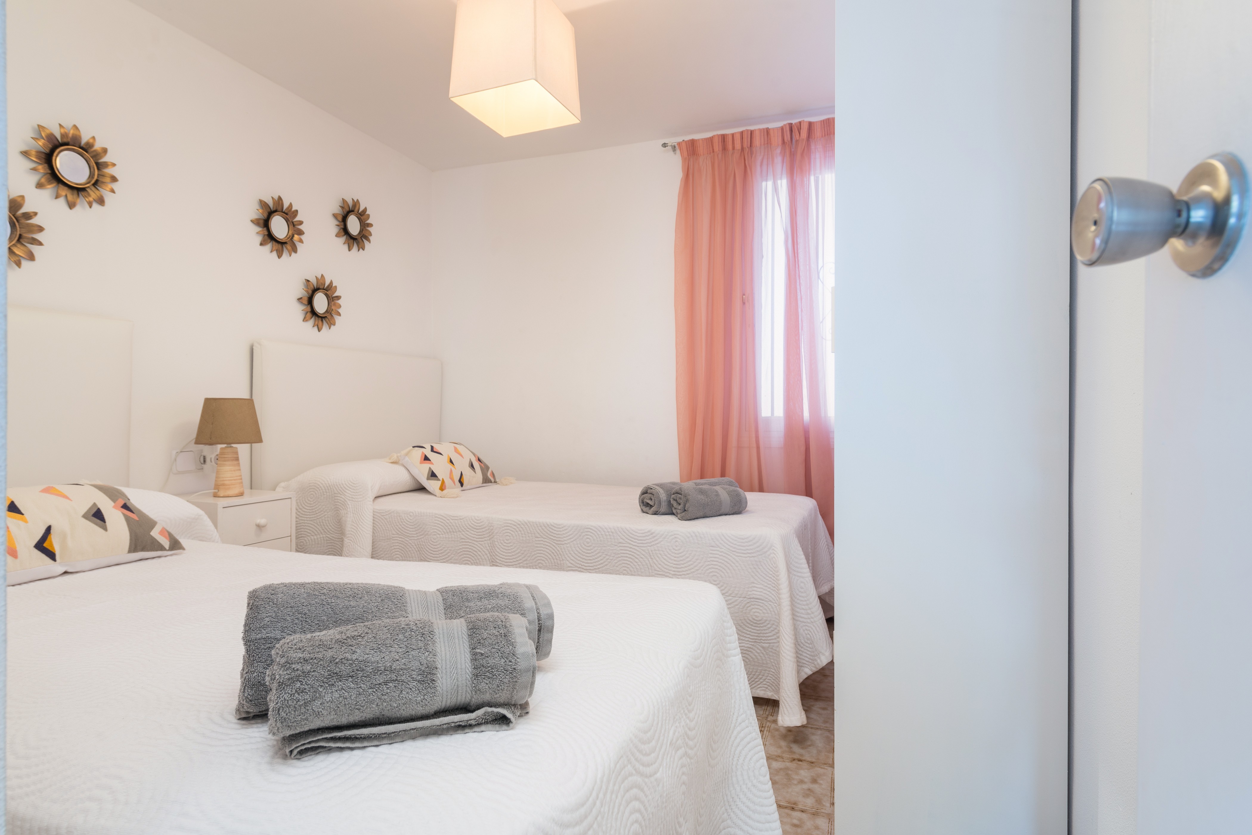Dit appartement op de eerste verdieping (zonder lift) verwelkomt u met een moderne, gerenoveerde sfeer die u zich meteen thuis laat voelen. De woonkamer-eetkamer met airconditioning is perfect om van maaltijden te genieten, te ontspannen of een programma te kijken op de Smart TV. De keuken is uitgerust met een keramische kookplaat en biedt alles wat u nodig heeft om te koken, samen met een wasruimte met wasmachine, strijkijzer en strijkplank. Het appartement heeft twee slaapkamers, elk met een kledingkast en ventilator: een met een tweepersoonsbed en toegang tot een klein terras, en de andere met twee eenpersoonsbedden. Een kinderbed en kinderstoel zijn ook beschikbaar. De badkamer heeft een douche en er zijn twee elektrische radiatoren voor extra comfort.