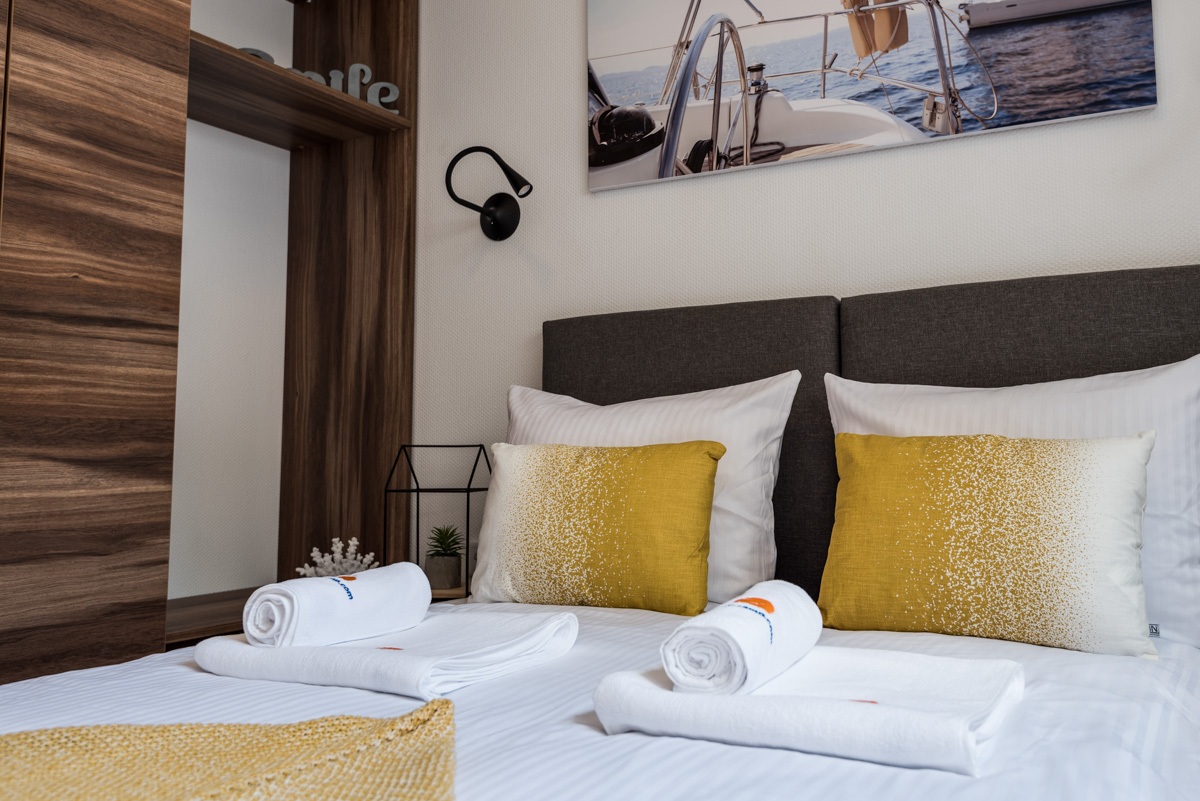 - Ouderslaapkamer met tweepersoonsbed 140x190cm (kan worden omgevormd tot 2 aparte bedden)