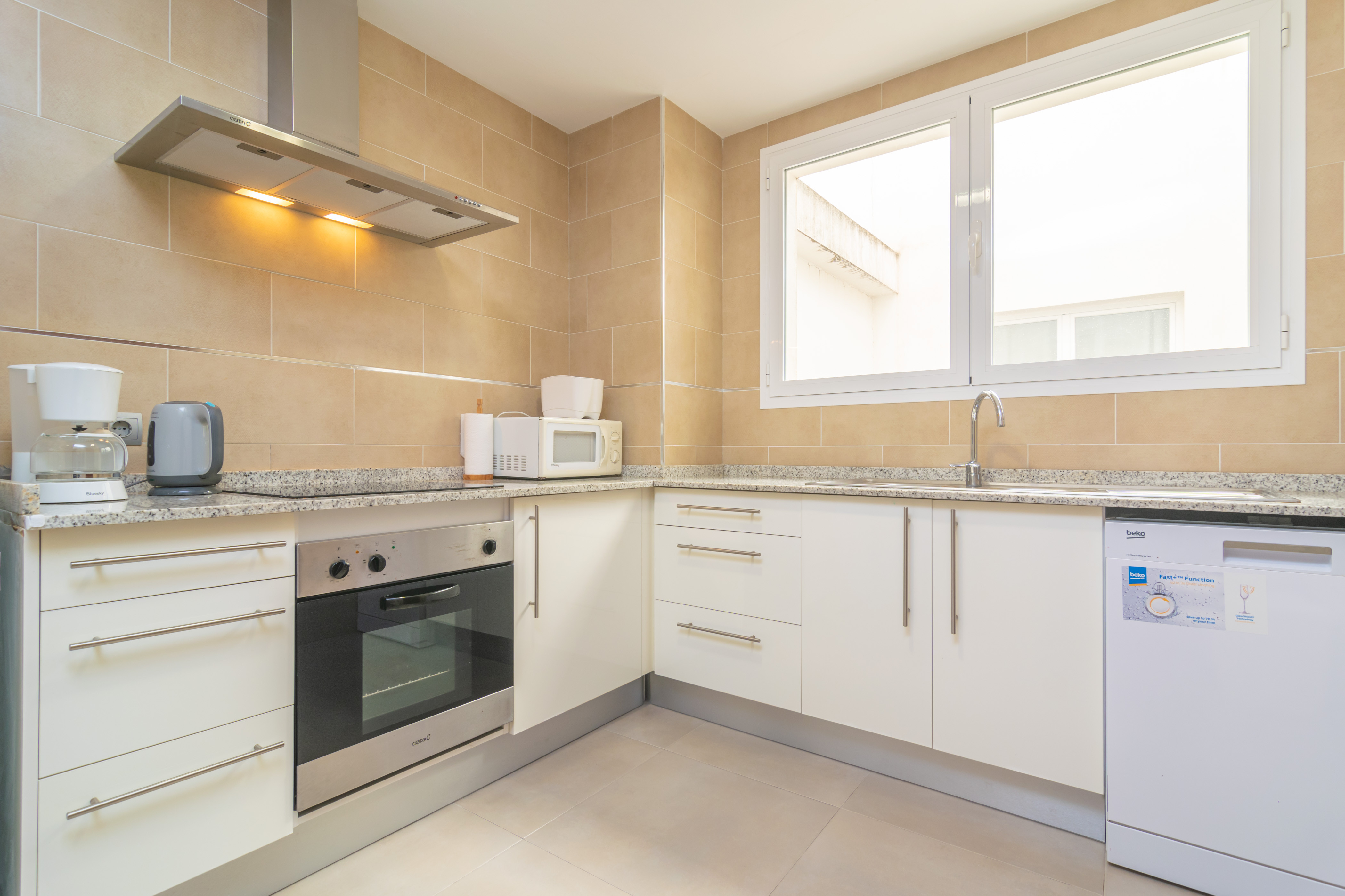 De binnenkant van dit parament op de tweede verdieping (met lift), is prachtig. Zijn ruimtelijkheid, moderne stijl en charme zullen u verbazen. De woon - eetkamer is perfect voor uw beste familie maaltijden en dan kunt u rusten op de bank terwijl u kijkt naar de TV-sat (alleen Duitse zenders), een DVD-film of luisteren naar wat muziek. De keuken biedt een inductiekookplaat. Er zijn 2 slaapkamers met twee eenpersoonsbedden en een kast. Een van hen heeft een en-suite badkamer met een bad, en er is nog een badkamer met een douche voor de rest van dit huis. Er is een babybedje en een kinderstoel aanwezig, twee ventilatoren, wasmachine, strijkijzer en strijkplank.
