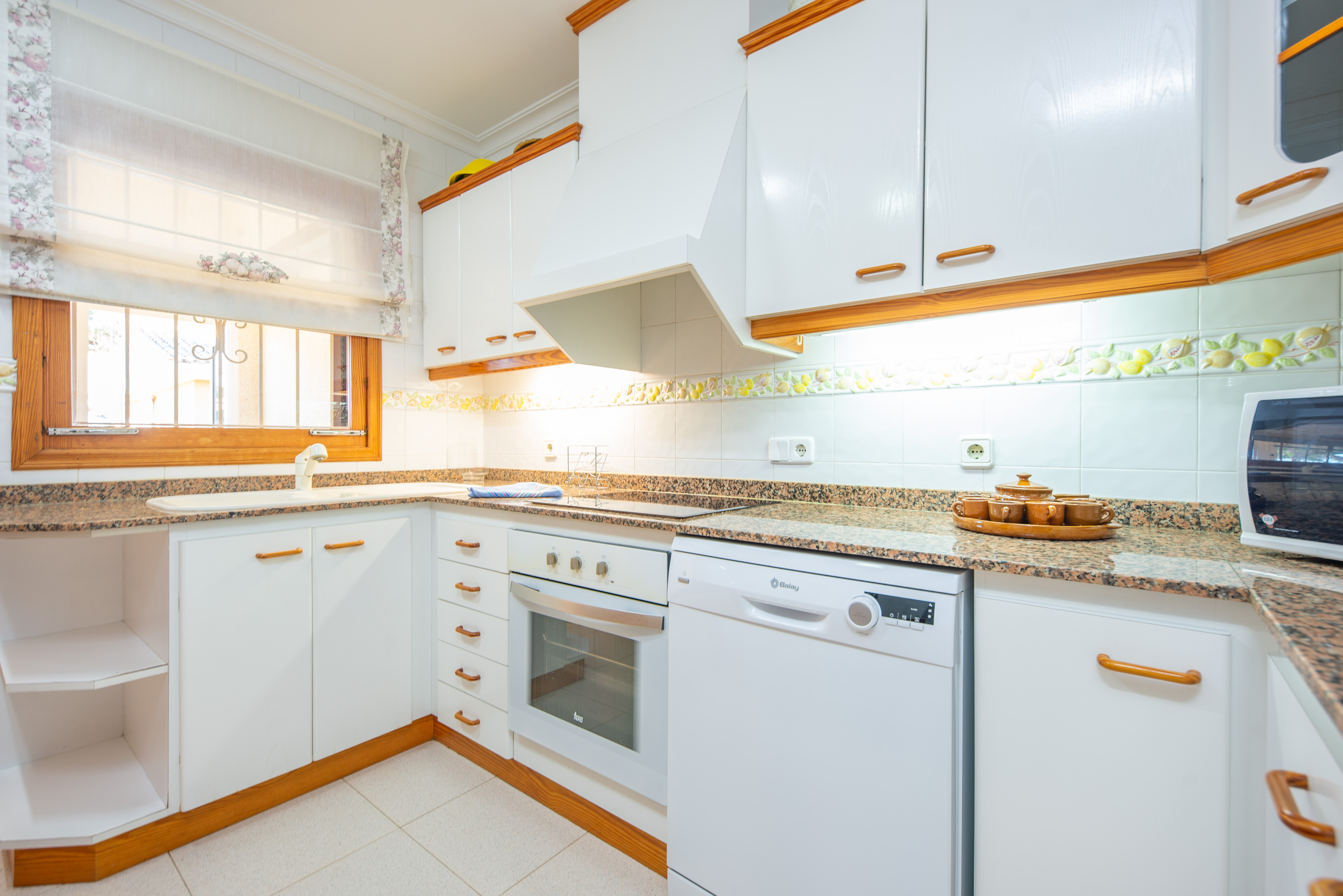Deze moderne villa heeft één verdieping voor ongeëvenaard comfort. Het hele huis is voorzien van airconditioning. Bij binnenkomst vind je een ruime woon-eetkamer, uitgerust met een Smart TV en twee comfortabele banken om in te ontspannen. De aparte keuken heeft een keramische kookplaat en is volledig uitgerust met alles wat je nodig hebt om heerlijke maaltijden te bereiden. Voor ontspanning zijn er drie gezellige slaapkamers: twee met tweepersoonsbedden en een met twee eenpersoonsbedden, allemaal met kledingkasten en ventilatoren voor een aangenaam verblijf. Daarnaast zorgen twee complete badkamers met bad voor gemak. Houd er rekening mee dat het huis geen babybedje heeft.
