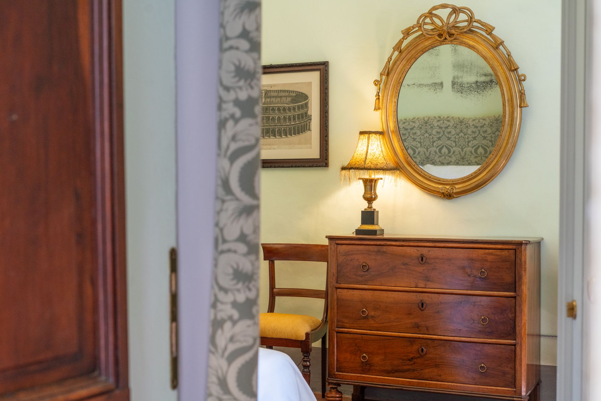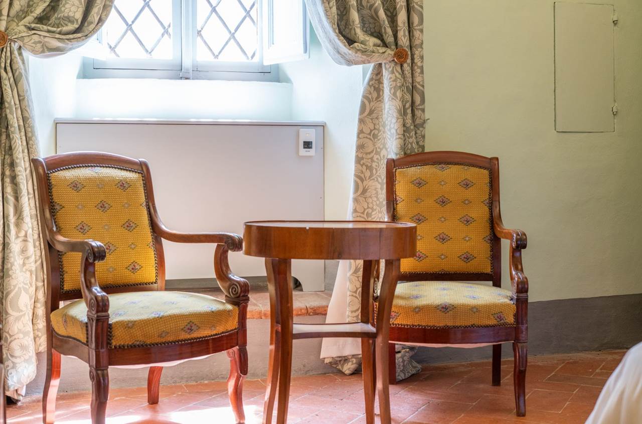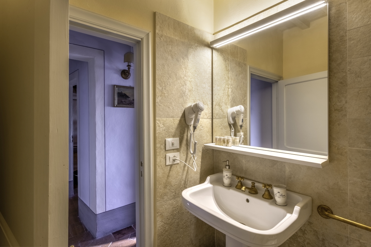 De suite met twee slaapkamers biedt een iets ingetogener maar even elegante sfeer. Het blijft trouw aan de stijl van de periode en is verrijkt met opvallende decoratieve elementen. De ramen bieden een prachtig uitzicht op het Toscaanse landschap en de Nobile wijngaarden.
