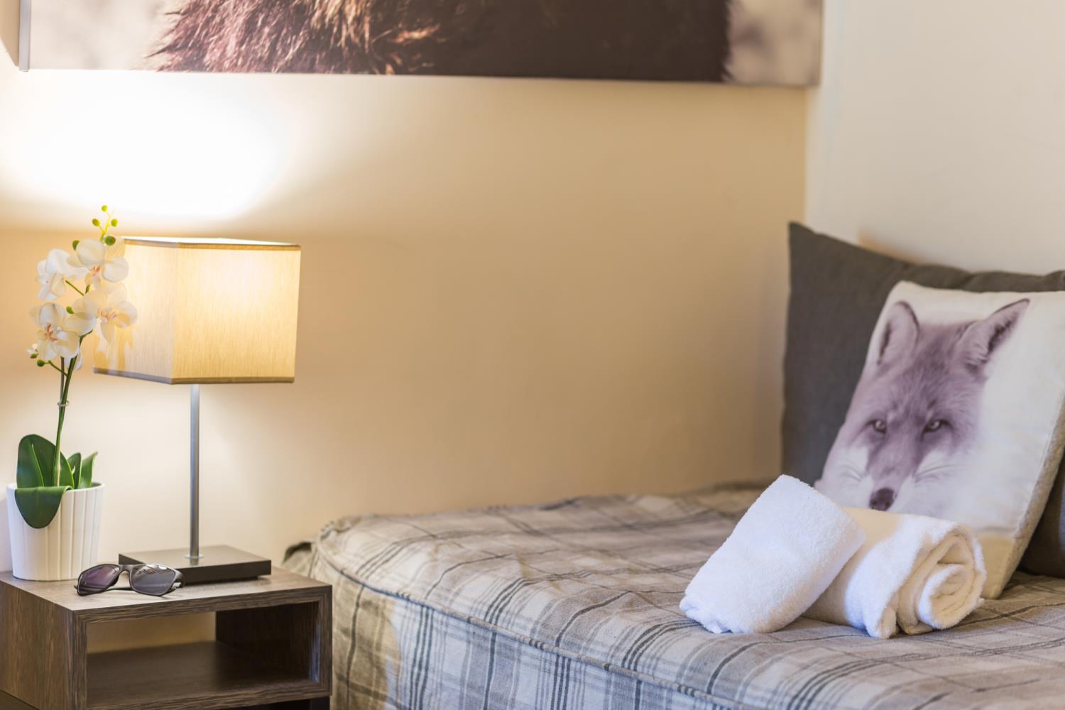 • Voorzieningen in de woonkamer: 1 tweepersoonsslaapbank en 3 eenpersoonsbedden