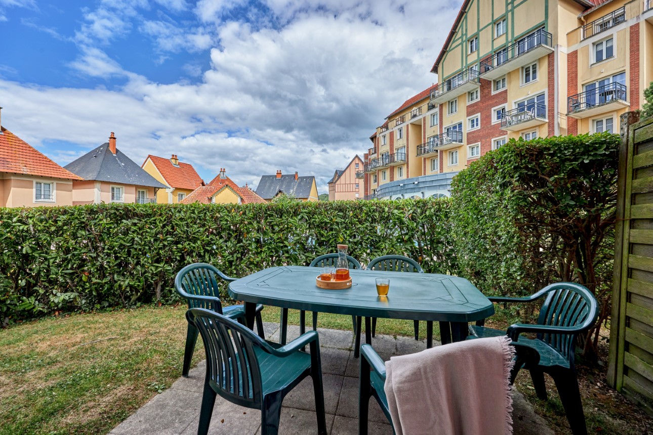 Deze duplexwoning beschikt over een open haard, een terras en een kleine tuin met tuinmeubelen.