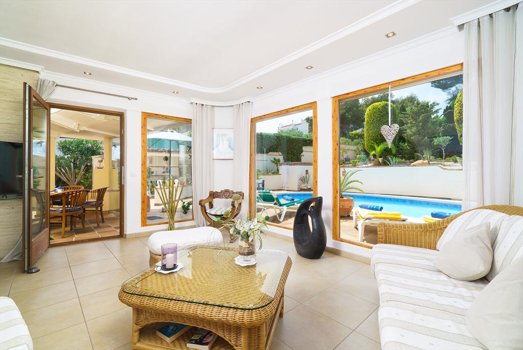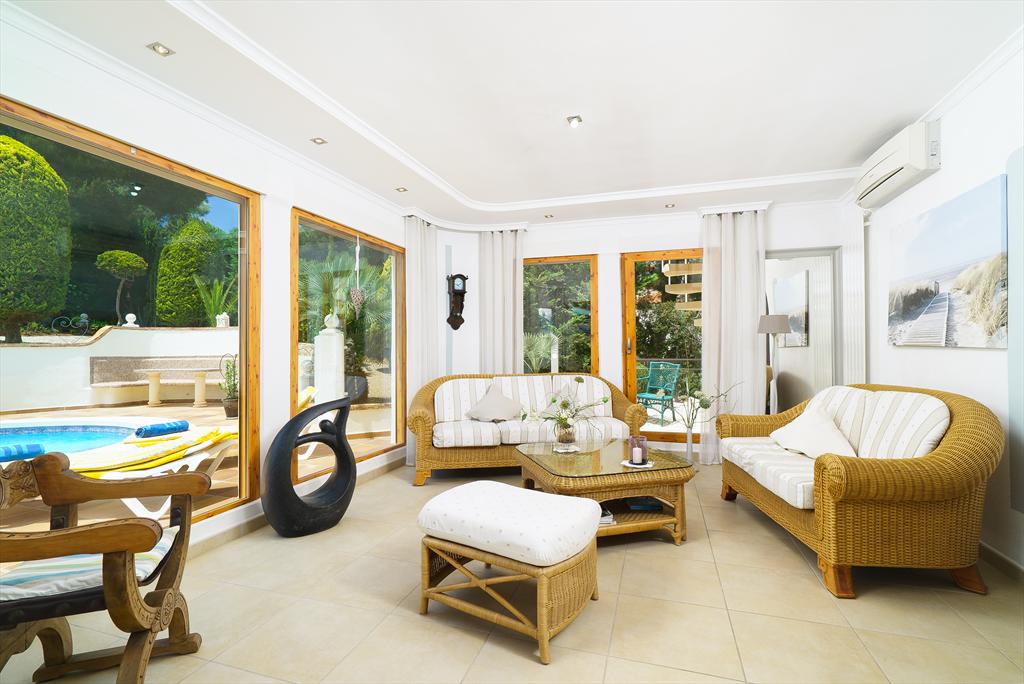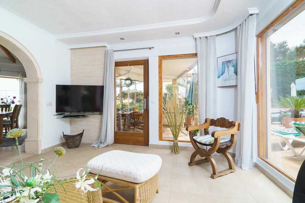 • Woonkamer met airconditioning, televisie, dvd-speler en hifi-installatie.
