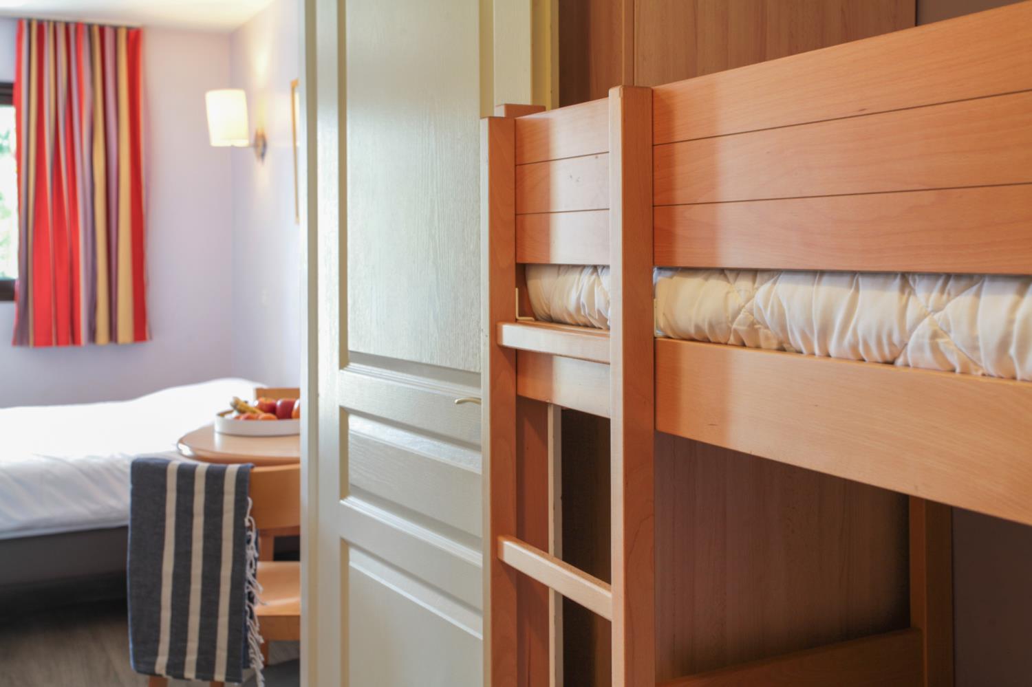 • Voorzieningen woonkamer: 1 tweepersoonsbed (160 cm) en 1 slaaphoek met stapelbed (aanbevolen voor kinderen)