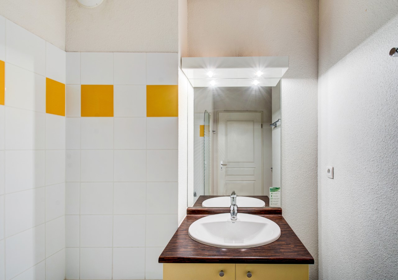 De badkamer is uitgerust met een bad en een geïntegreerd toilet, zodat je tijdens je verblijf verzekerd bent van gemak en comfort.