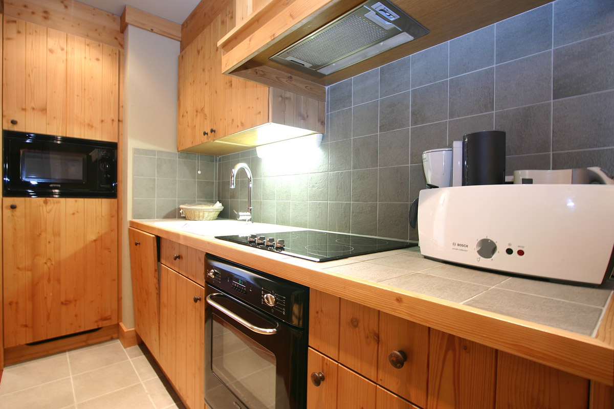 - Volledig ingerichte kitchenette met keramische kookplaat, koelkast, oven, magnetron, vaatwasser, koffiezetapparaat, waterkoker en broodrooster