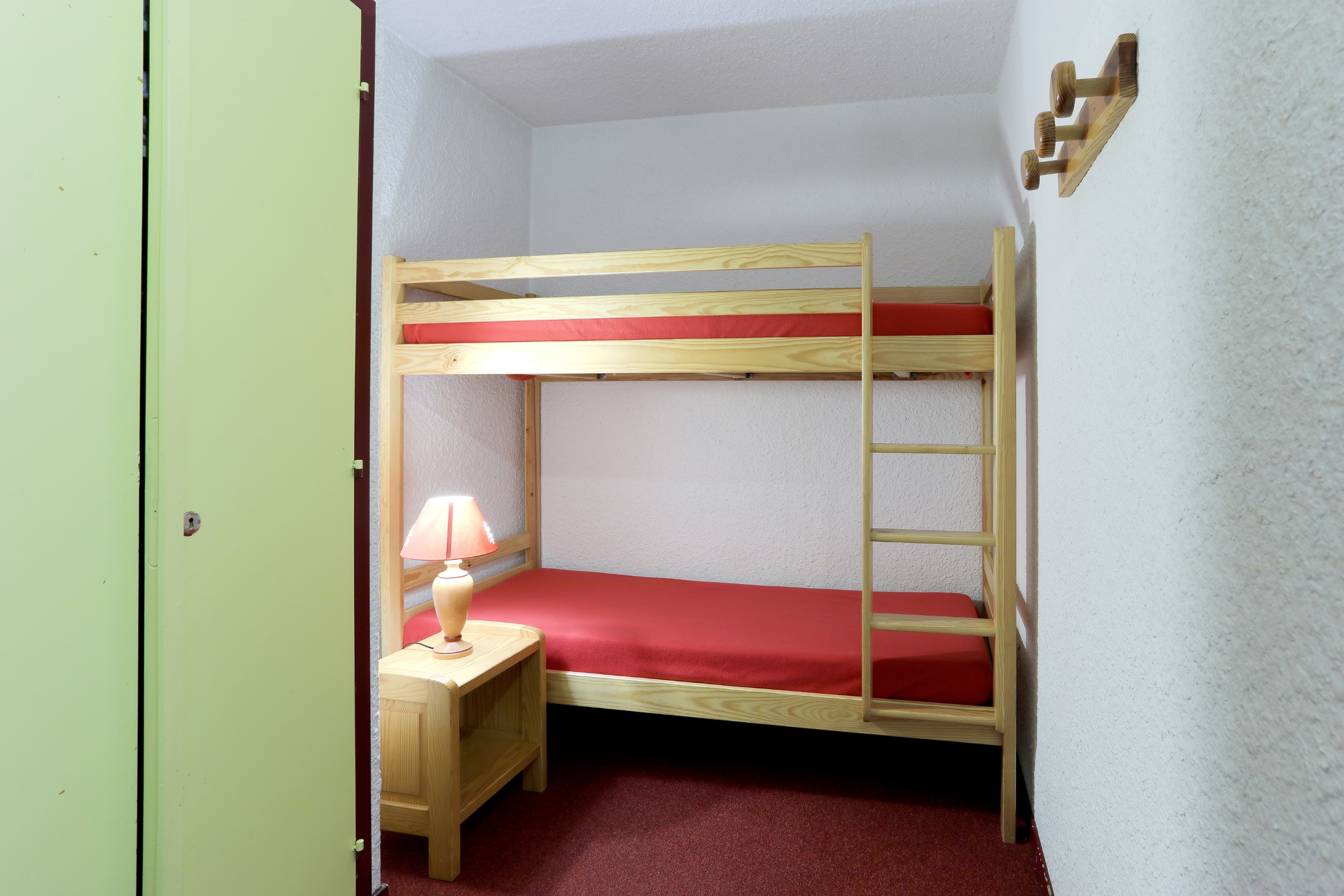 Een apart slaaphoekje is voorzien van een stapelbed, waardoor je twee extra slaapplekken hebt in een compacte en praktische indeling.