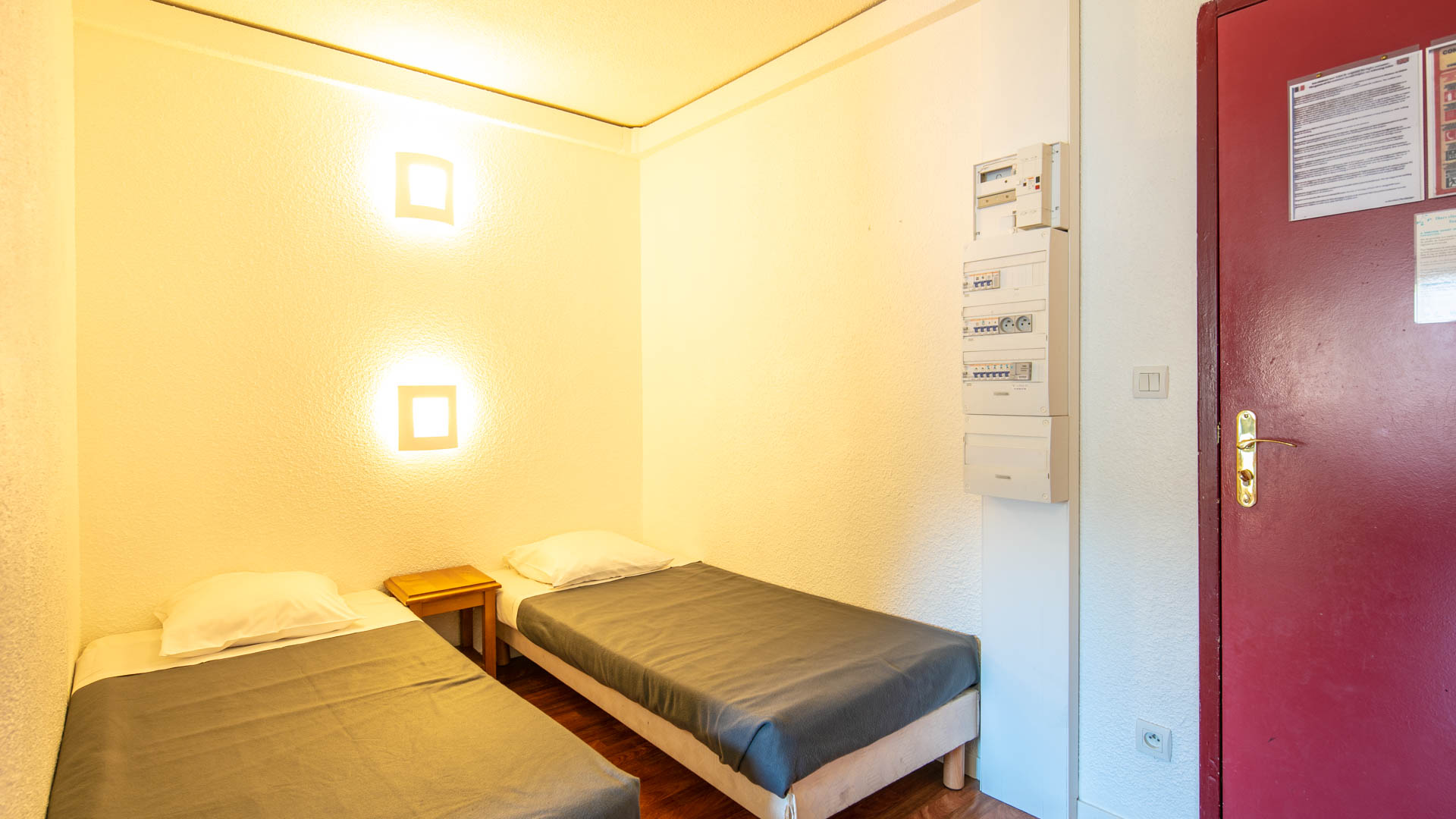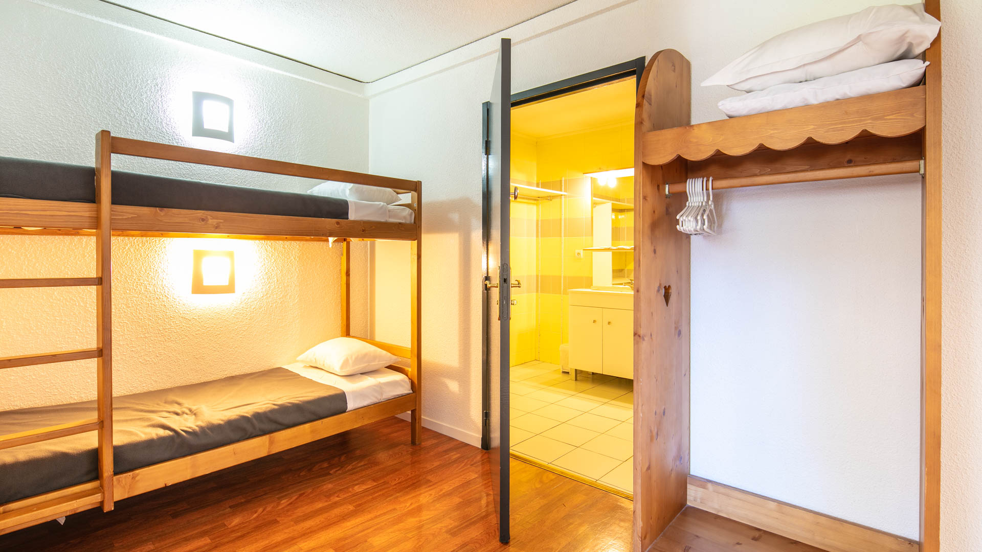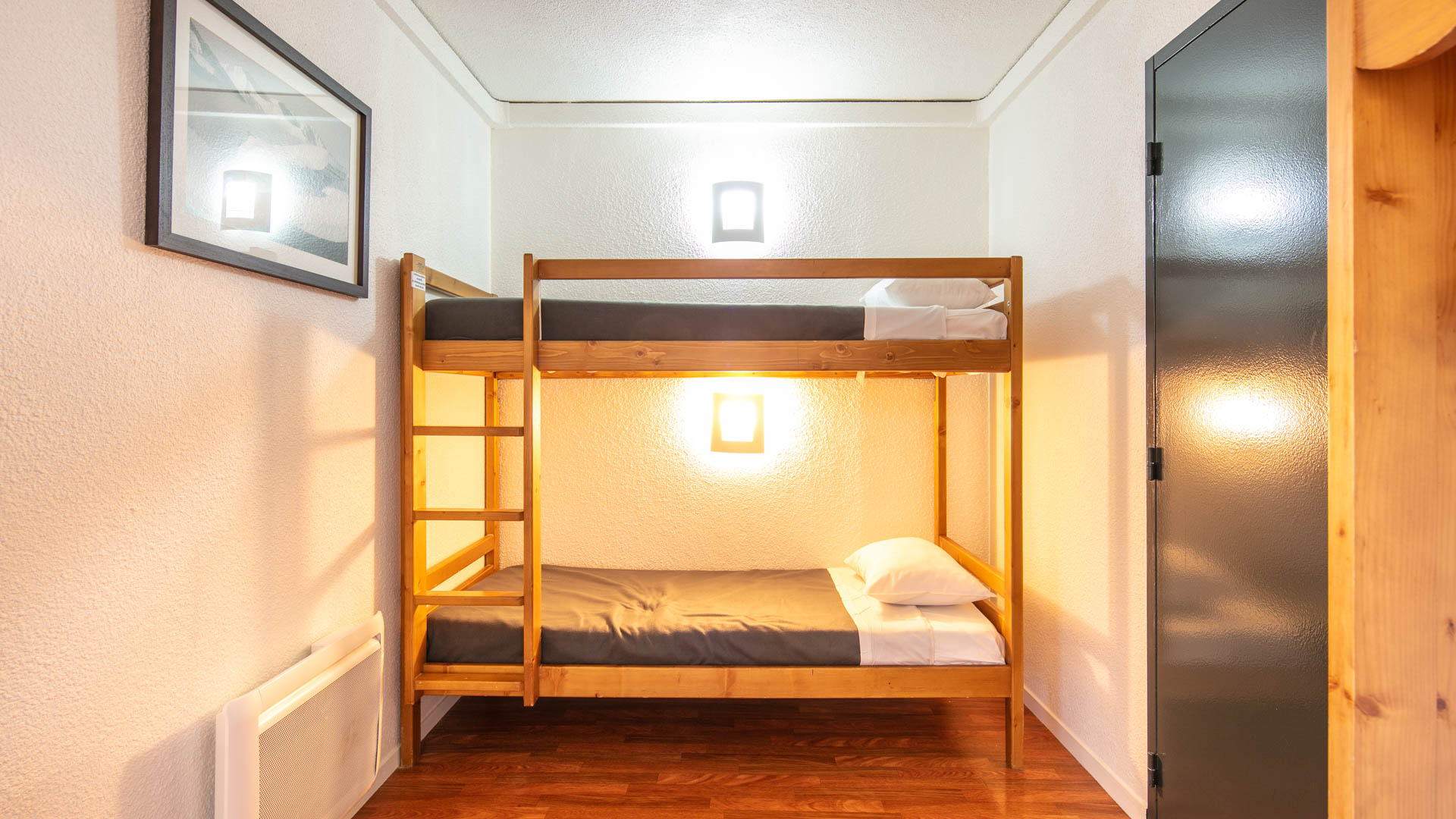 Slaapgedeeltes: 1 met stapelbed en 1 met twee eenpersoonsbedden