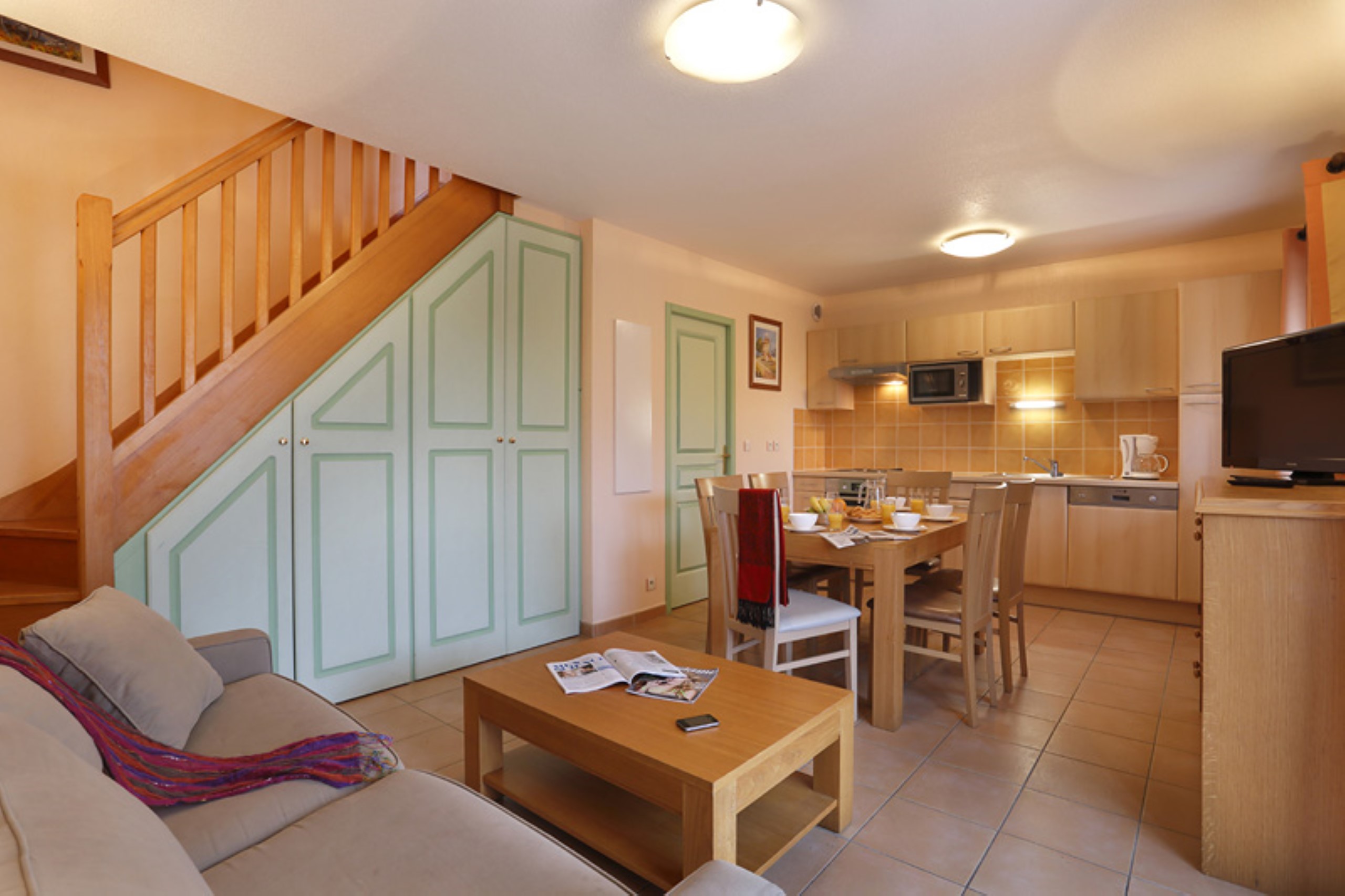 - Kitchenette: Volledig uitgerust met een koelkast, magnetron, kookplaten, vaatwasser en een filterkoffiezetapparaat - ideaal voor het eenvoudig bereiden van maaltijden.