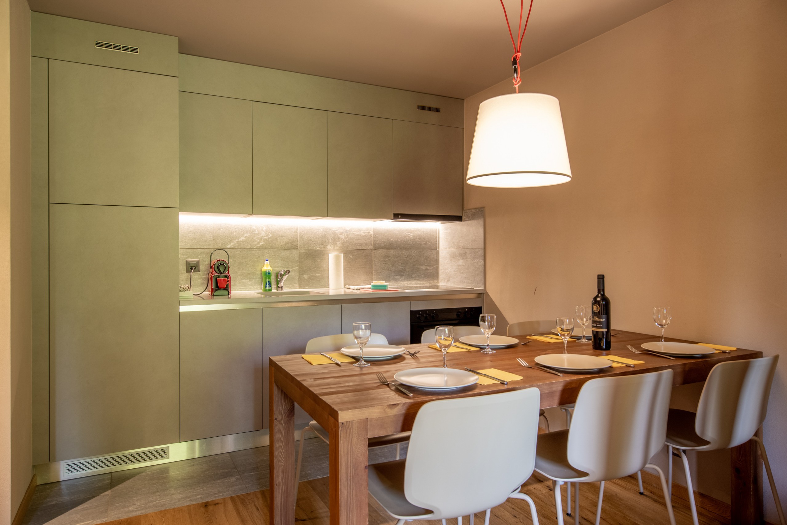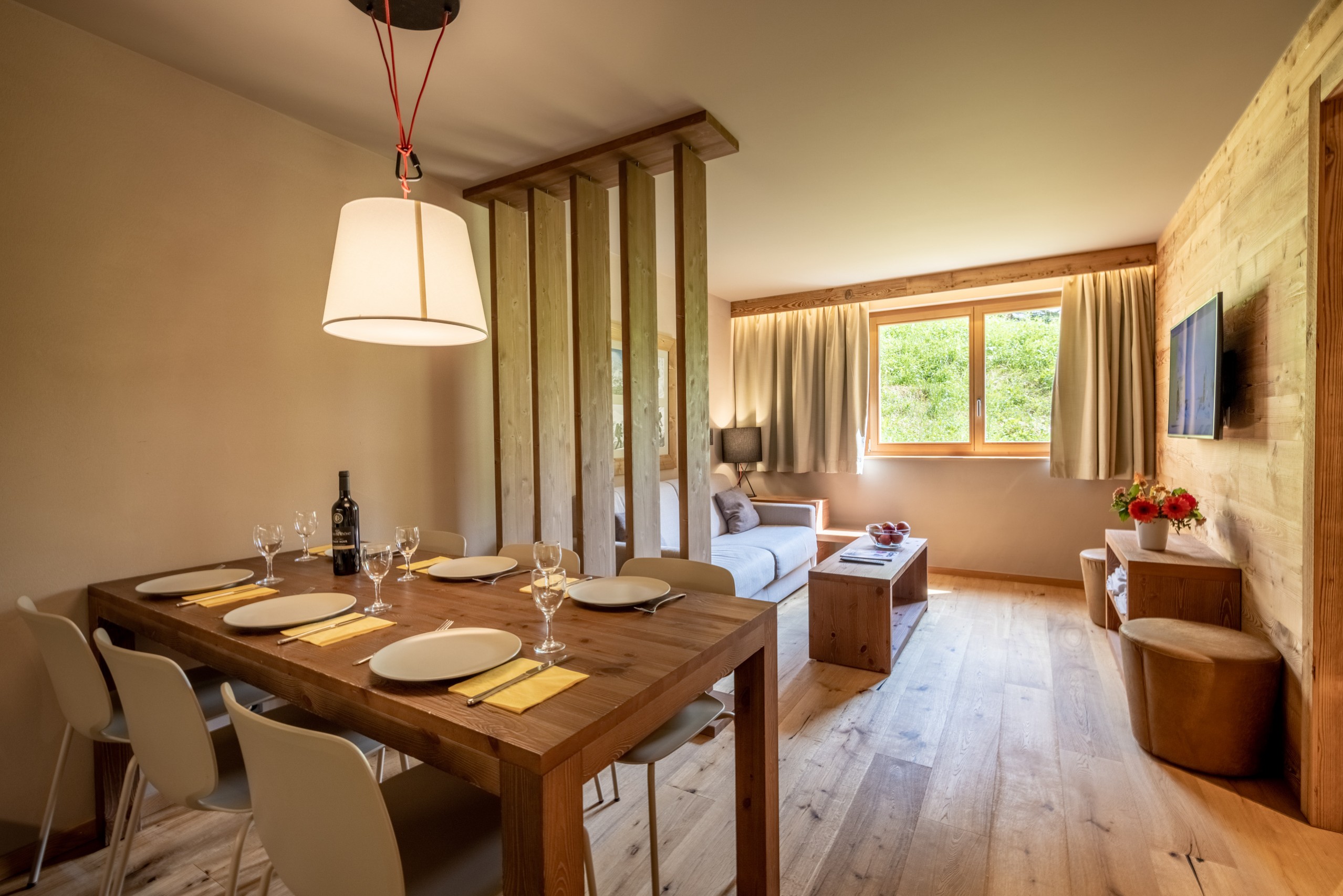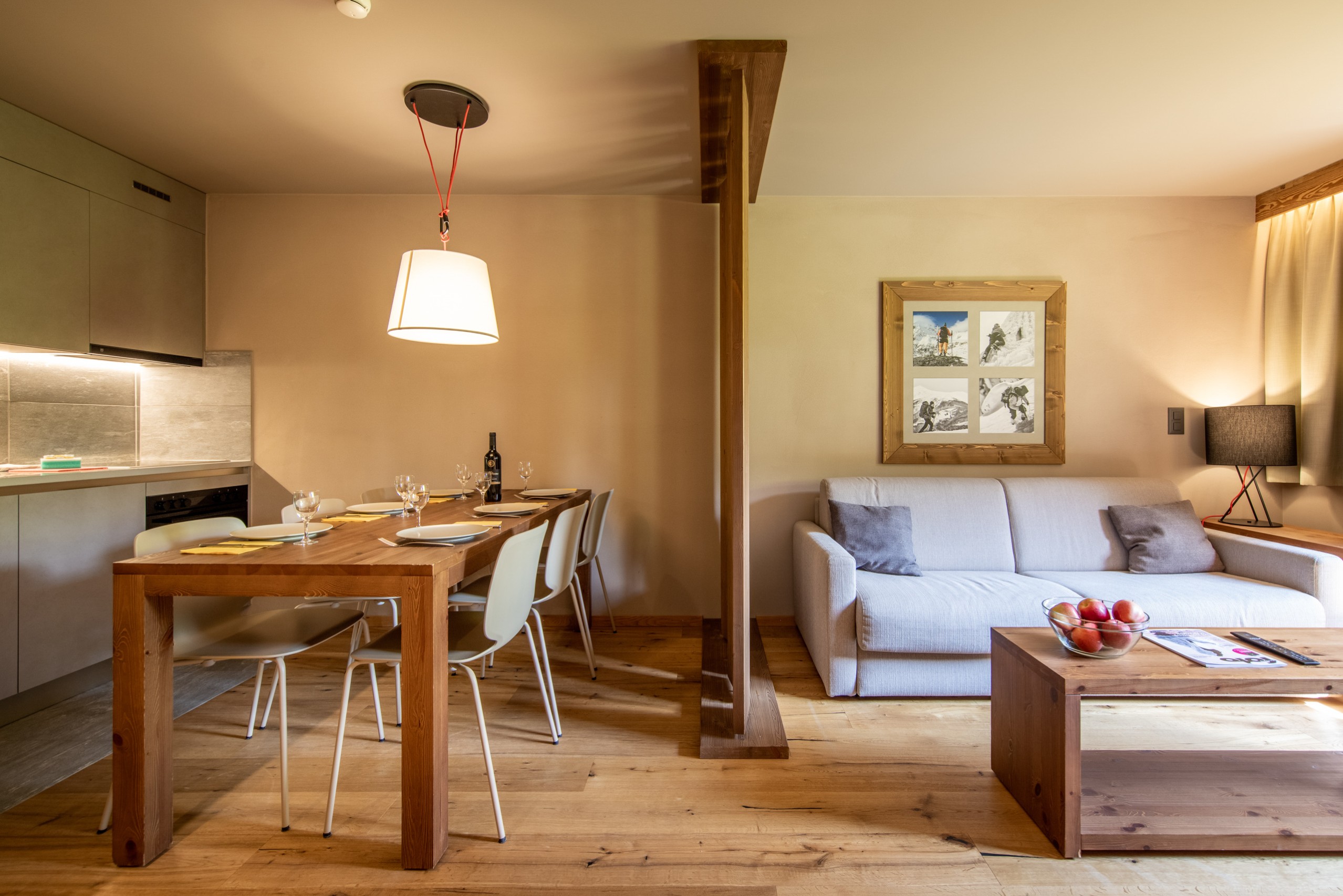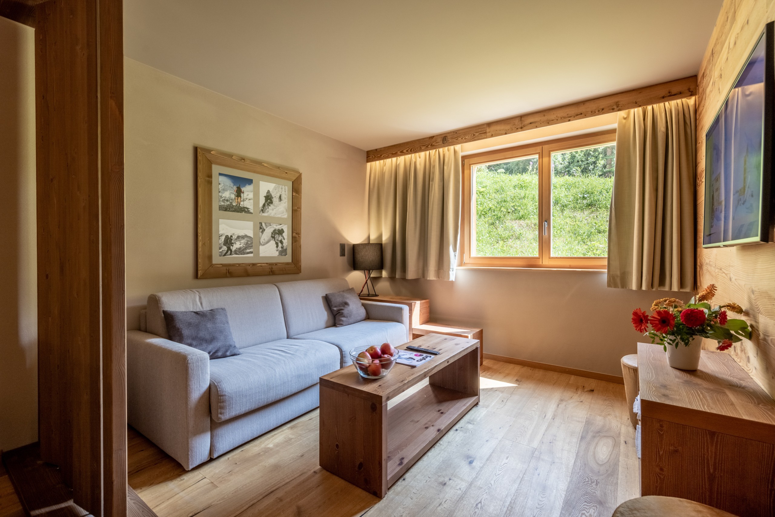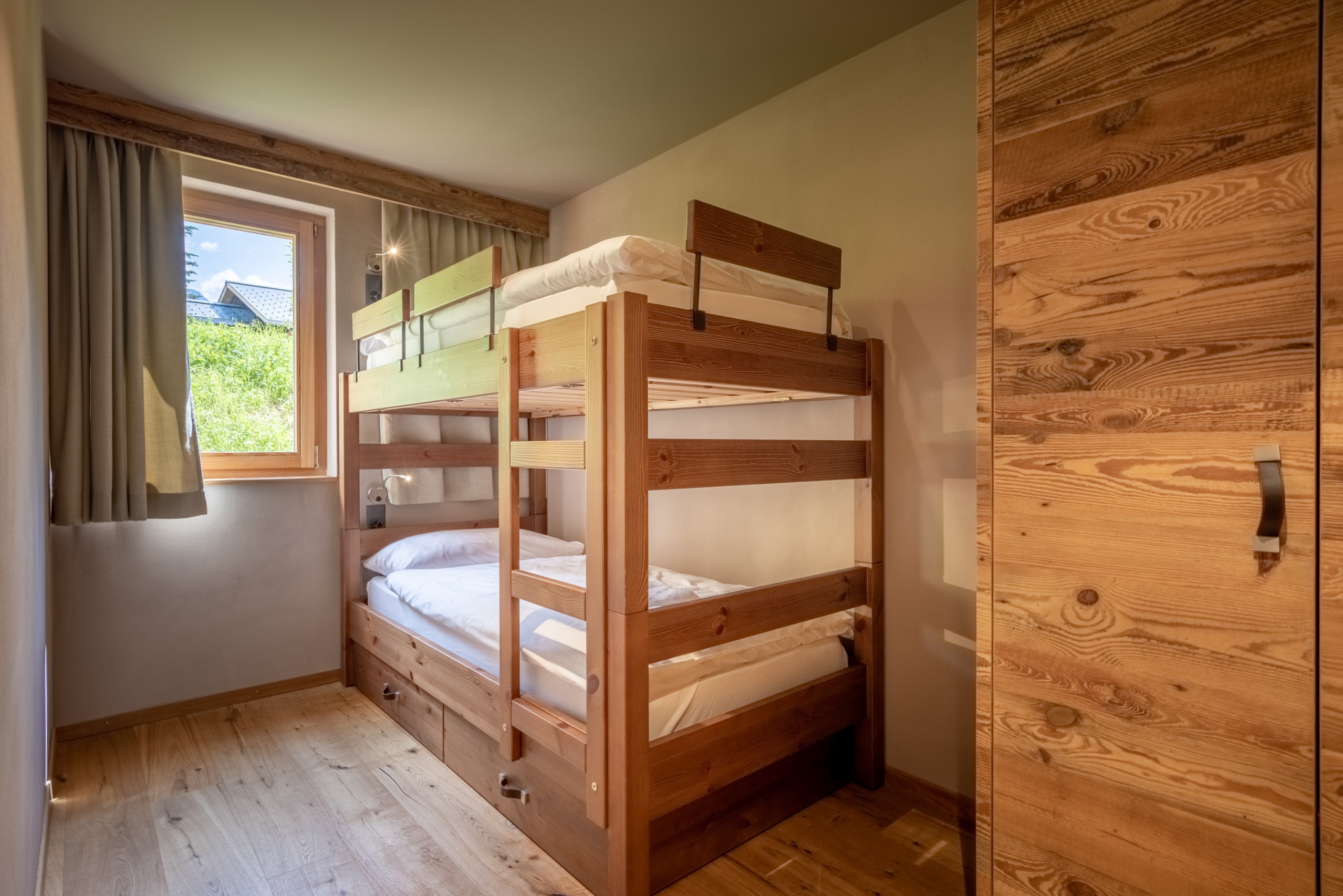 Dit appartement van 51 m² is perfect voor gezinnen of kleine groepen. Het beschikt over twee slaapkamers, één met een tweepersoonsbed (2x90 cm) en één met stapelbedden, een woonkamer met een slaapbank (160 cm), een open keuken, een doucheruimte en een apart toilet.