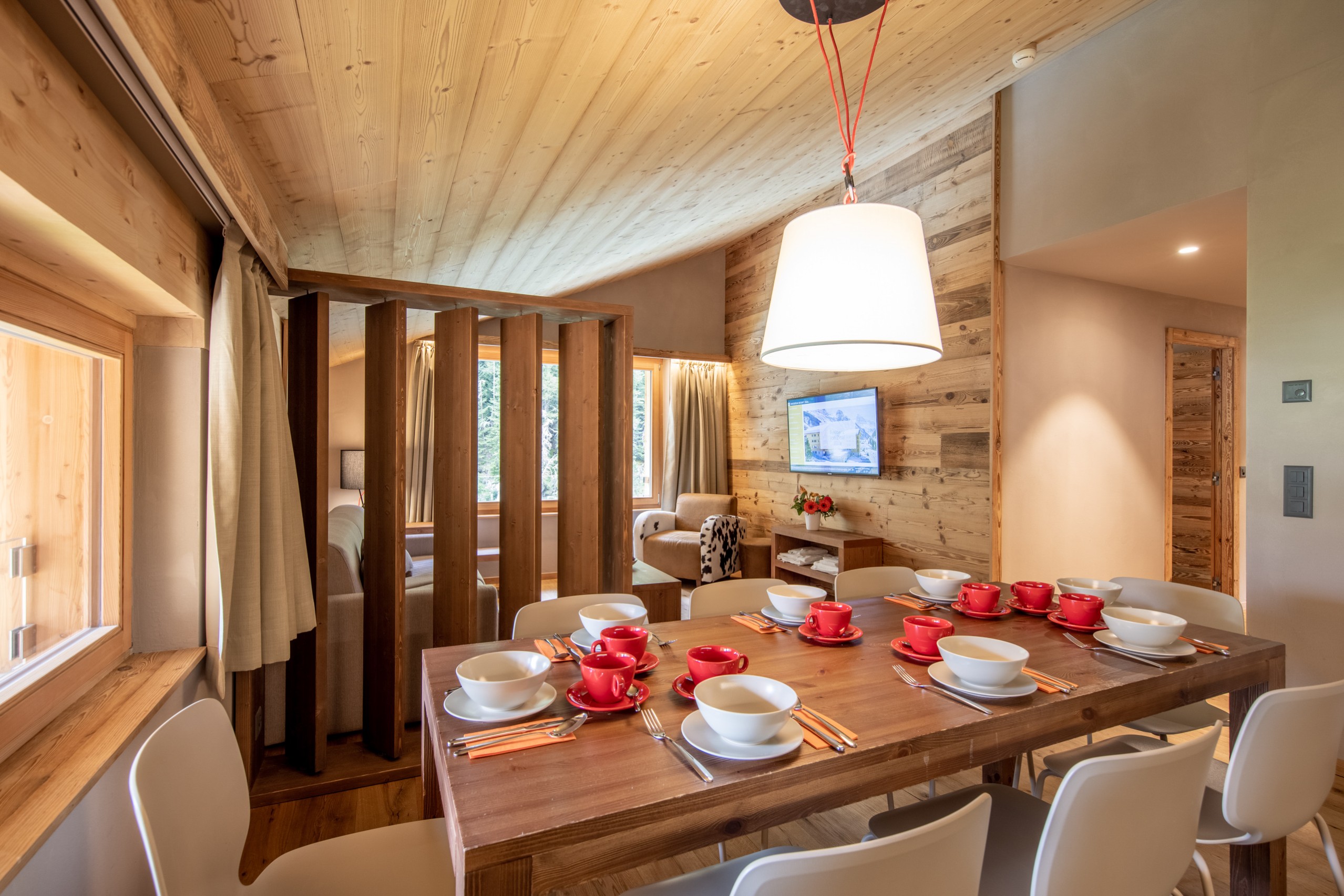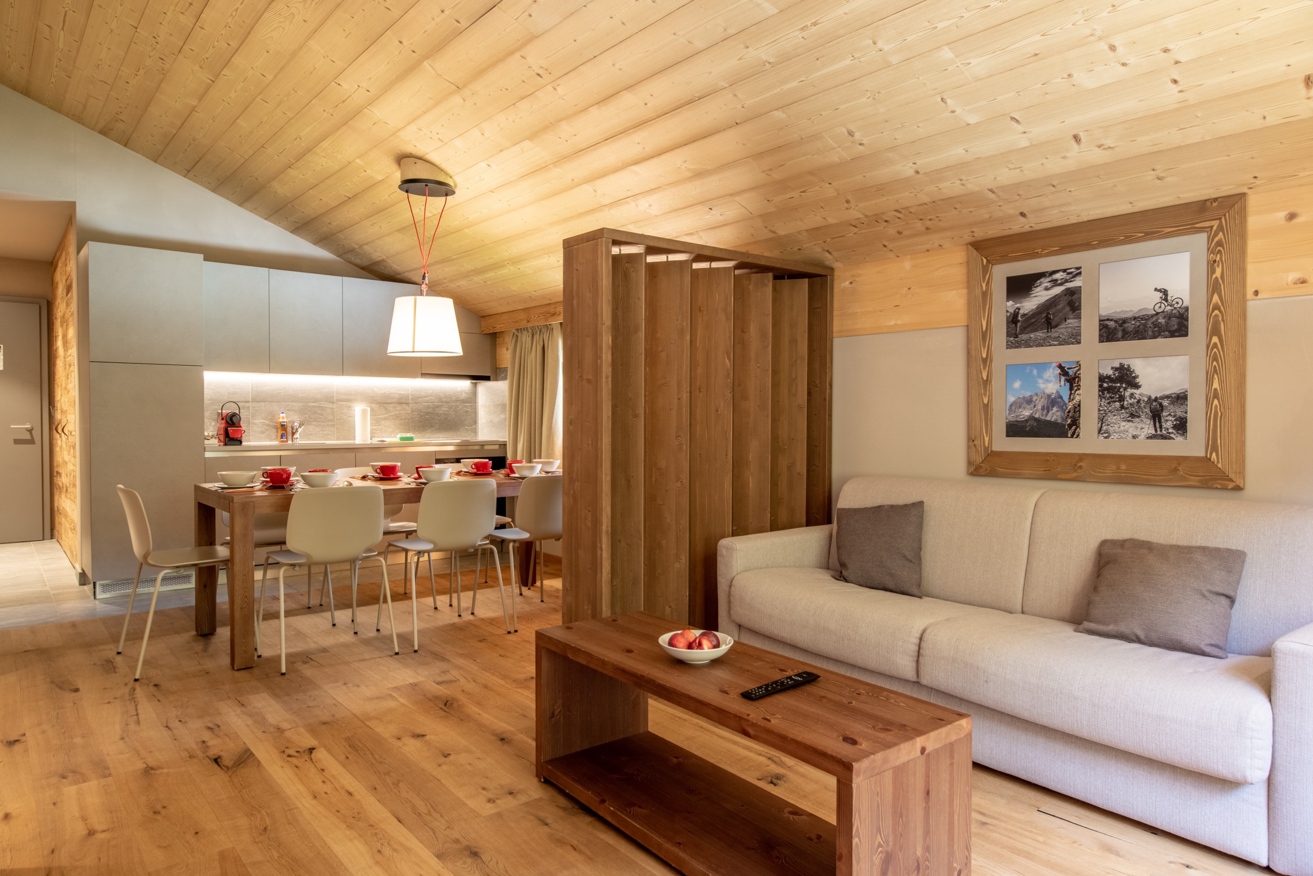 Dit ruime appartement van 76 tot 121 m² is ideaal voor grotere gezinnen of groepen. Het beschikt over drie slaapkamers - alle met tweepersoonsbedden (2x90 cm) of twee met tweepersoonsbedden en één met stapelbedden - een woonkamer met een tweepersoonsslaapbank, een open keuken, twee badkamers (met douche of bad) en een apart toilet.