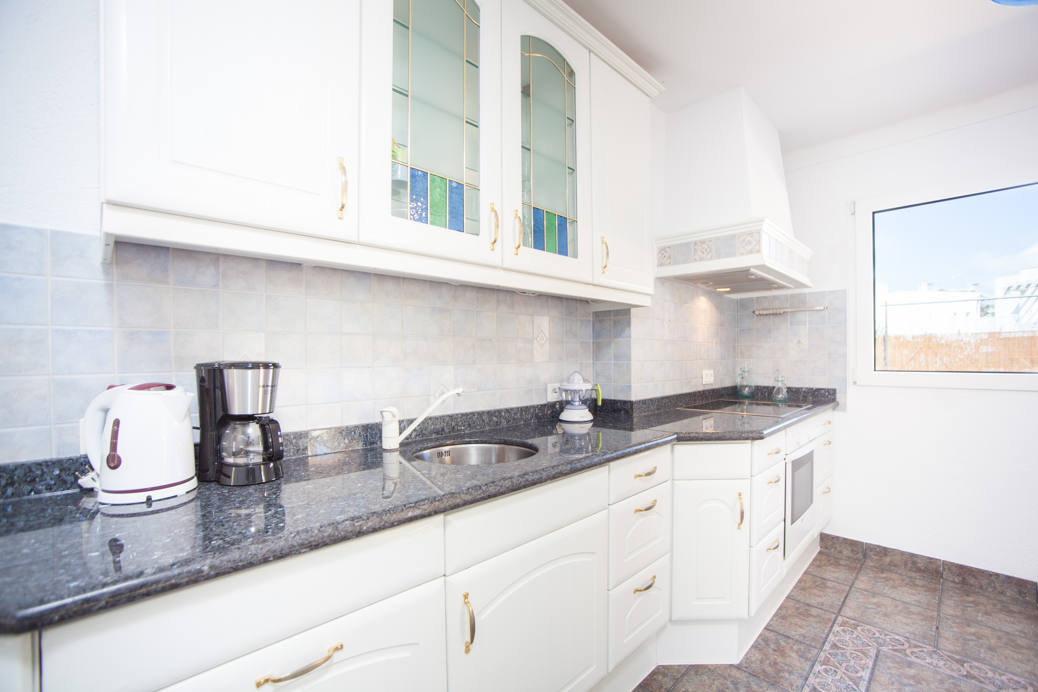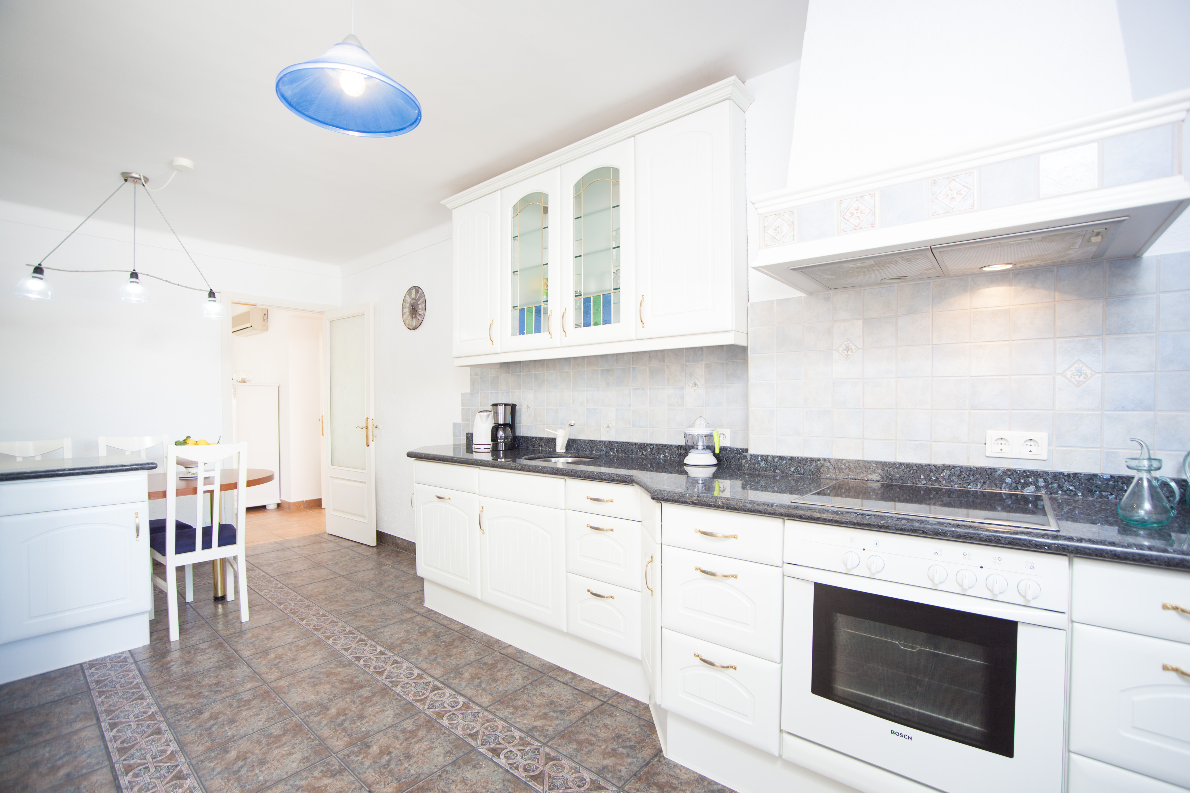 Binnen in de villa ziet u eerst een grote hal die de woonkamer en de eetkamer met elkaar verbindt. In de woonkamer kunt u uitrusten van de Mallorcaanse zon door gewoon de airconditioning aan te zetten terwijl u satelliet-tv kijkt of geniet van een mooie cd-beat. Als het gaat om de eetkamer, zoals we al zeiden, is het open langs de woonkamer. Het gevoel van ruimte is geweldig, en het stelt je in staat om gesprekken met elkaar te voeren. De vitrokeuken biedt u alle voorzieningen die u nodig heeft tijdens uw verblijf. In dezelfde keuken is er een wasruimte met wasmachine, strijkijzer en strijkplank. Aangekomen bij de rustruimte, kunt u een van de 5 slaapkamers kiezen. Er zijn er 4 met elk een tweepersoonsbed. Trouwens, een van die 4 heeft ook een kinderbedje en een kinderstoel, voor het geval je het nodig zou kunnen hebben. De vierde kamer is uitgerust met twee eenpersoonsbedden en alle kamers hebben airconditioning om uw nachten en dagen op Mallorca te verlevendigen. U vindt 3 badkamers met douche, waarvan een en suite.