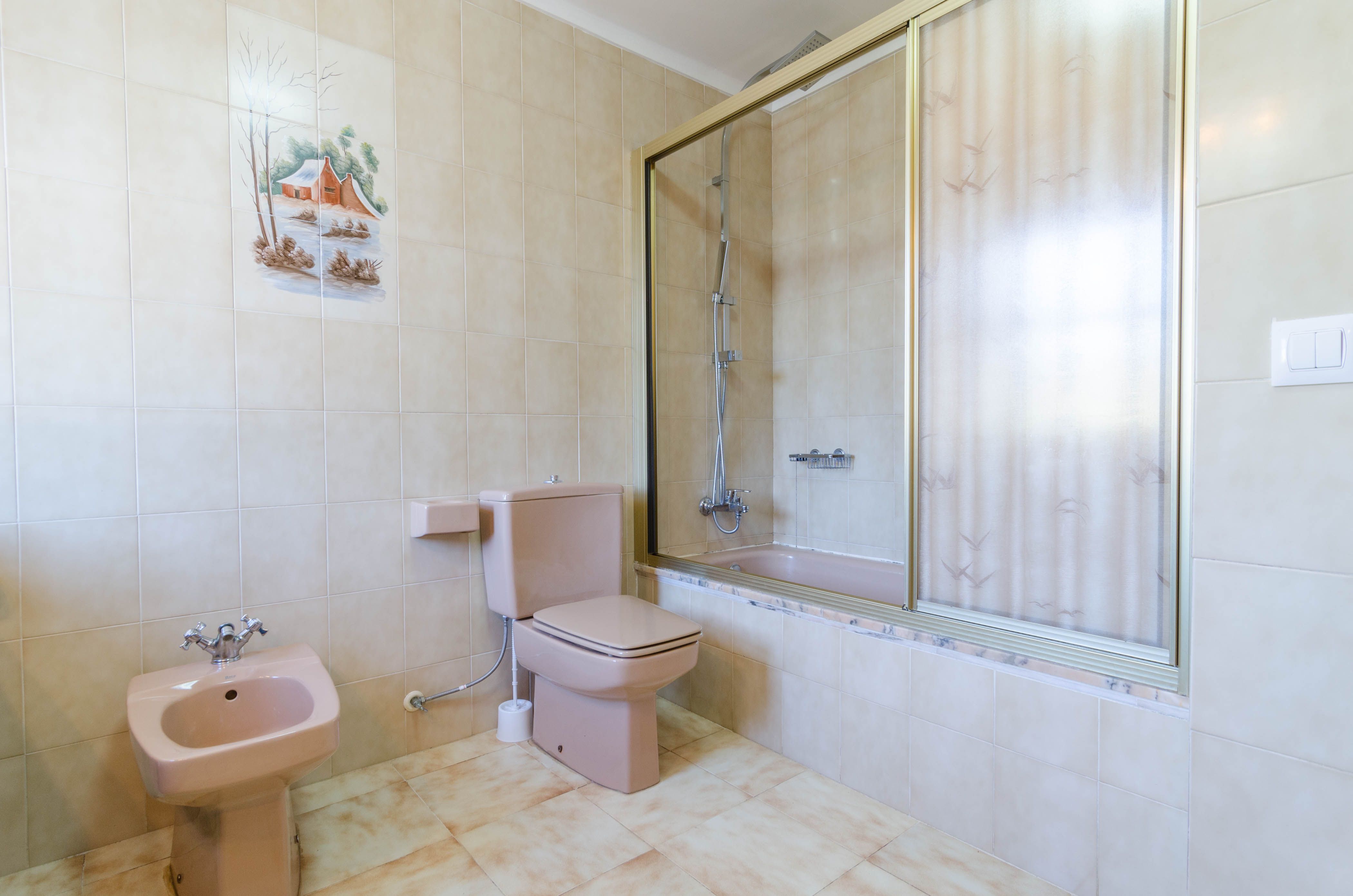 Het huis is verdeeld over twee verdiepingen. Op de begane grond is er een ruime woonkamer met vijf fauteuils en TV-Sat; een aparte eetkamer met een tafel en stoelen en een grote volledig uitgeruste keuken met vitro, zodat u kunt koken zonder enig probleem. Alle 4 de slaapkamers hebben toegang tot een klein terras en ze hebben elk twee eenpersoonsbedden; een van hen heeft een eigen badkamer met bad. Naast de eigen badkamer is er nog een badkamer met bad. Er zijn 4 ventilatoren. Als je met een baby reist, zorgen we voor een kinderbedje en een kinderstoel (op aanvraag). De wasruimte bevindt zich op verdieping -1, naast de garage, en bestaat uit een wasmachine, strijkijzer en strijkplank.