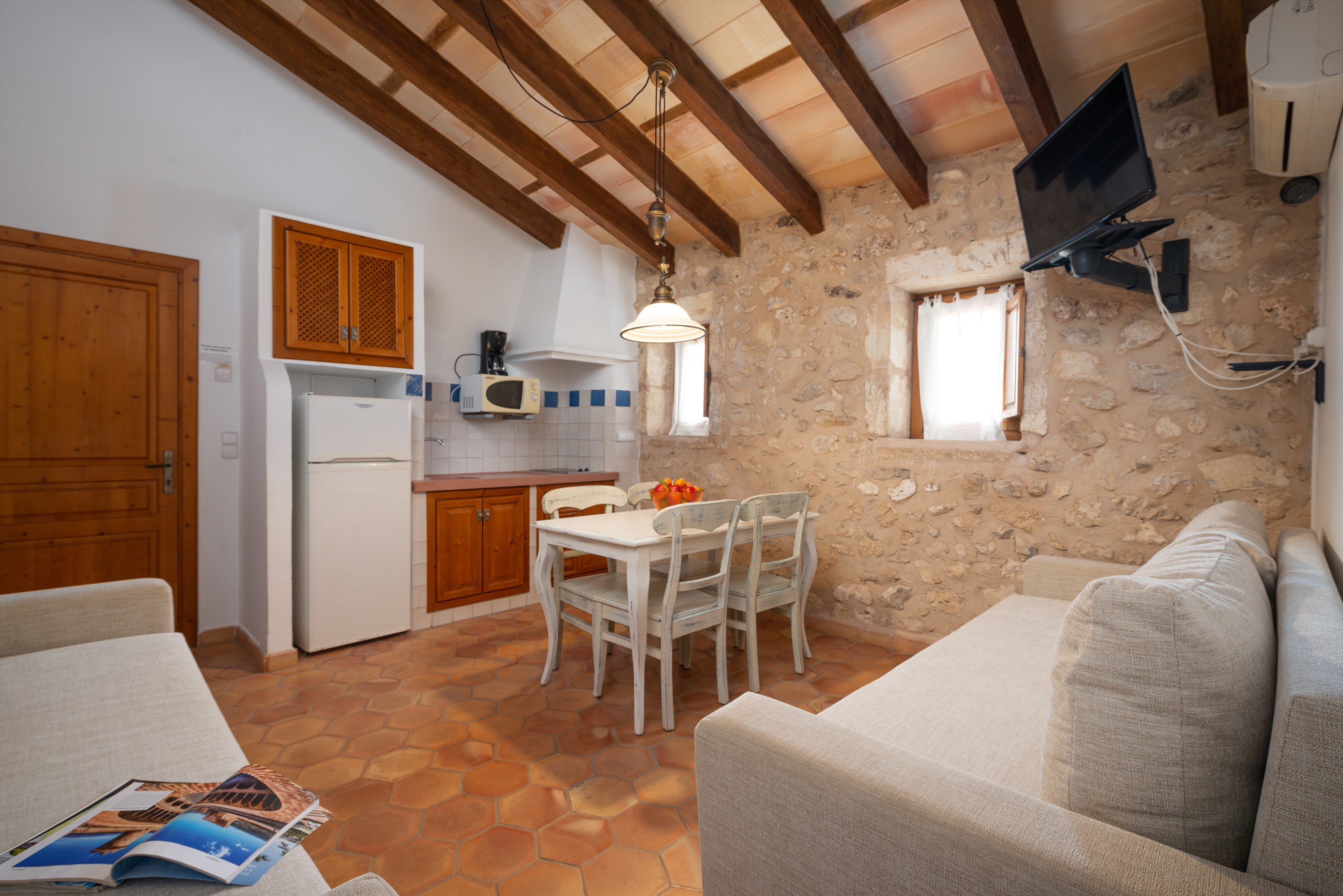 Onze comfortabele één-slaapkamerappartementen, gelegen op de begane grond of eerste verdieping, zijn ontworpen voor een ontspannen verblijf. Elke accommodatie beschikt over een ruime woon- en eetruimte met satelliet-tv en een slaapbank voor kinderen, evenals een open keuken met een inductiekookplaat en de benodigde kookgerei.