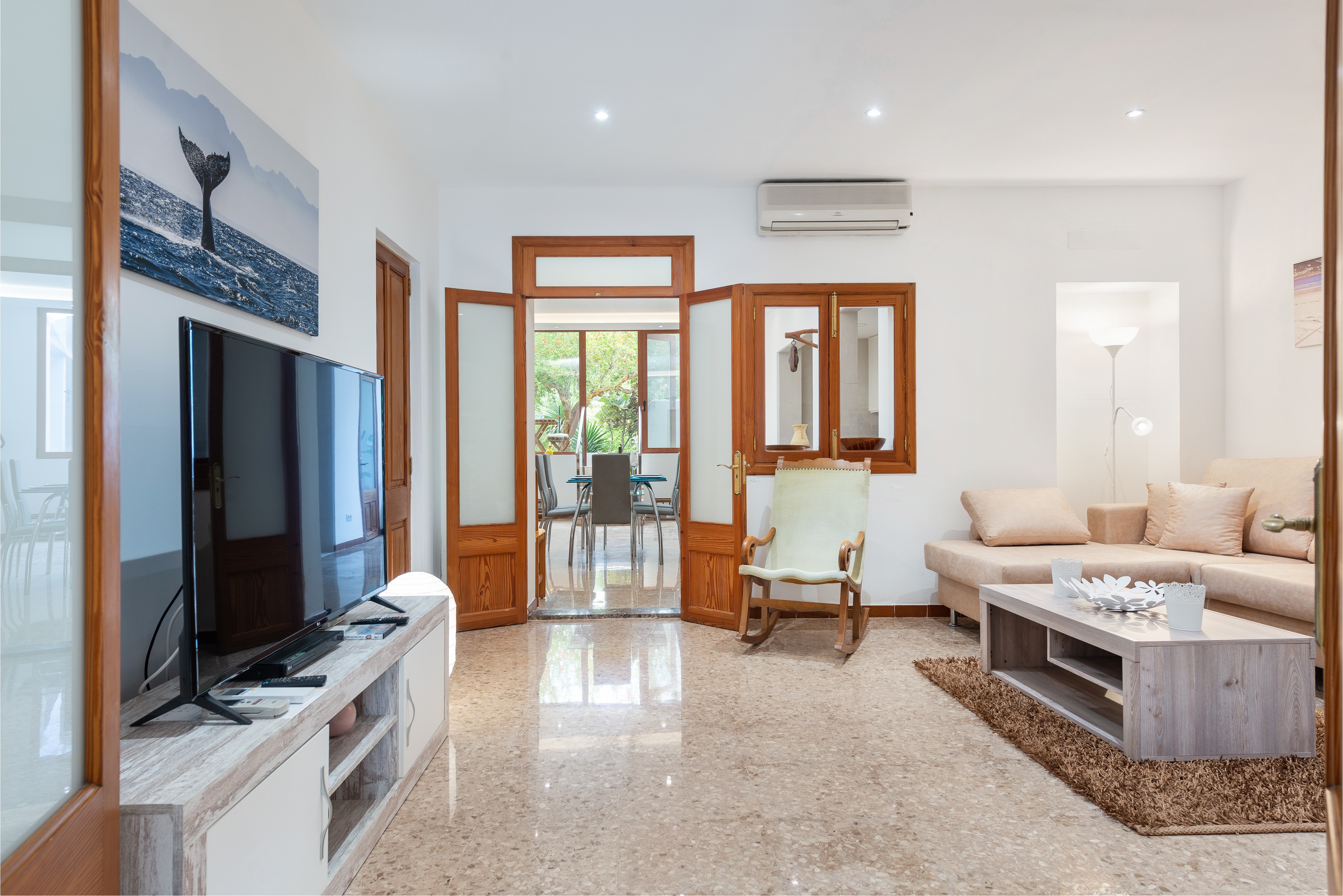 Het gelijkvloerse huis is gerenoveerd in een moderne stijl maar heeft enkele traditionele details behouden. Vanuit de achtertuin heeft u direct toegang tot de moderne woonkeuken voorzien van een keramische kookplaat. Hier vindt u ook de wasmachine, strijkijzer en strijkplank. Vervolgens vindt u de woonkamer met AC waar u kunt ontspannen en satelliet-tv kunt kijken. Om uit te rusten, beschikt het huis over 3 slaapkamers, twee met 2 aparte bedden en airconditioning, en een met slechts een eenpersoonsbed. Het raam van een van de tweepersoonskamers komt uit op de woonkamer en de eenpersoonskamer heeft geen raam. Het huis heeft ook twee badkamers met een douche, een met toegang vanuit de woonkamer en een van de slaapkamers. Tot slot zijn er een babybedje en een kinderstoel aanwezig.