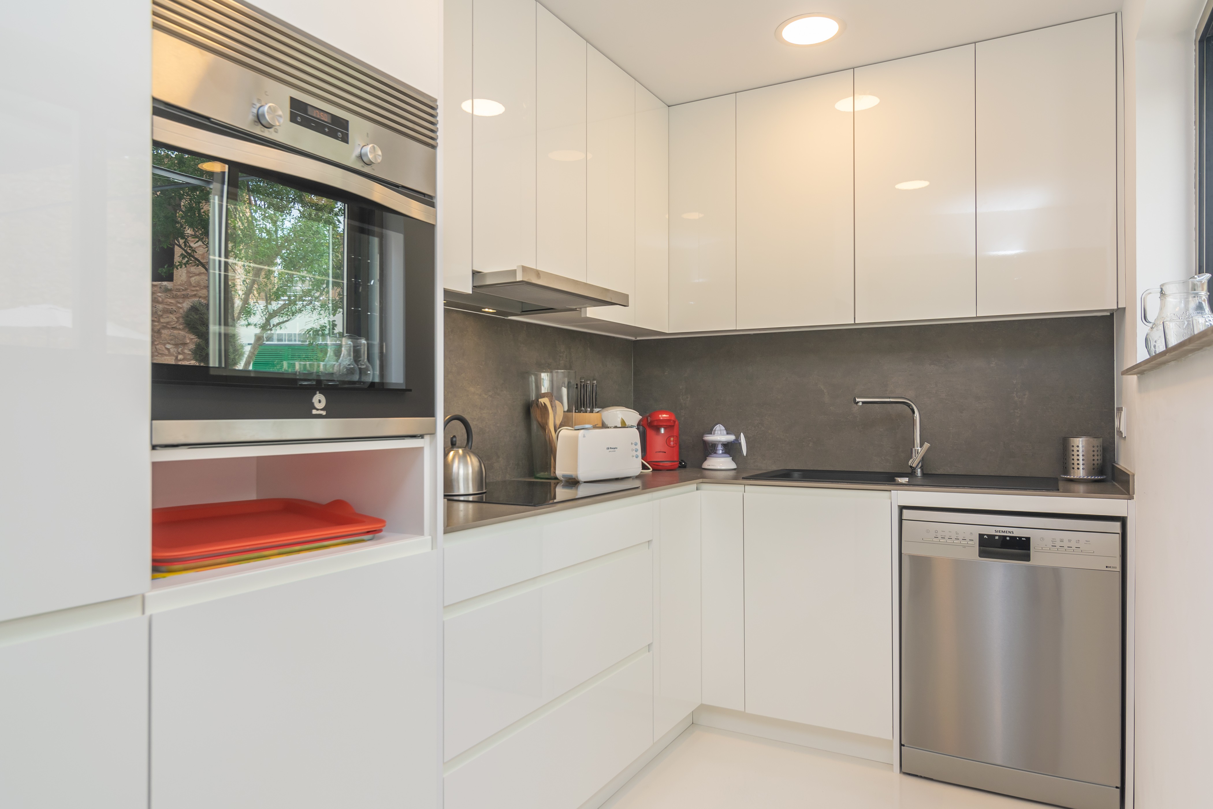 Het moderne interieur is van alle gemakken voorzien. Op de begane grond vindt u de mooie woonkamer met een Smart TV, AC en houtfornuis die open staat voor de woonkeuken voorzien van een keramische kookplaat. De wasruimte beschikt over een wasmachine, wasdroger, strijkijzer en strijkplank. Op de begane grond is er ook een slaapkamer met tv, airconditioning en tweepersoonsbed, een badkamer met ligbad en een aparte studeerkamer. Op de eerste verdieping bevinden zich twee slaapkamers met tweepersoonsbedden, waarvan één met televisie. Beide hebben een eigen badkamer met douche, airconditioning en directe toegang tot het terras. Als u met uw baby reist, kunnen wij voor een kinderbedje en een kinderstoel zorgen.