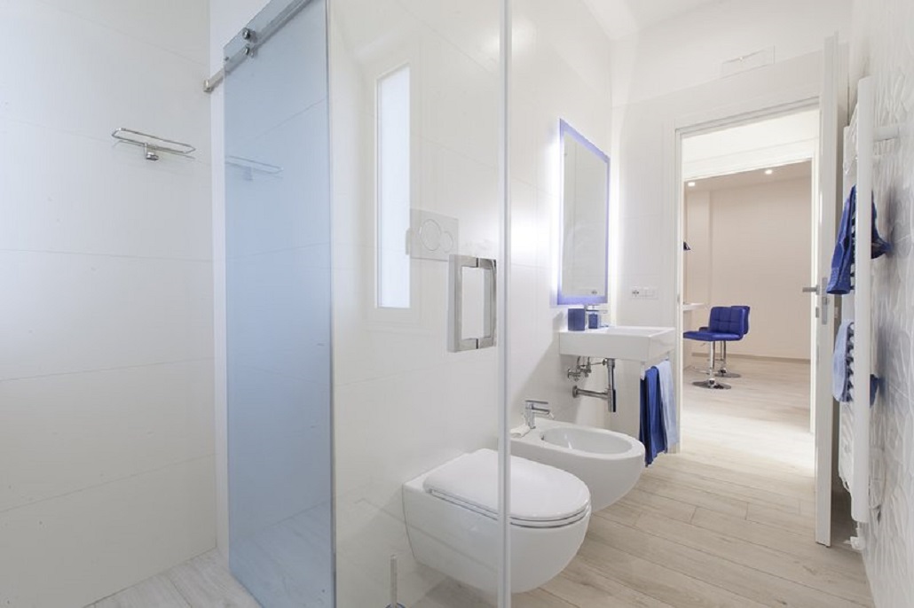 • Badkamer 1: Wastafel, toilet, bidet, douche, bad en haardroger (toegang vanuit de woonkamer).