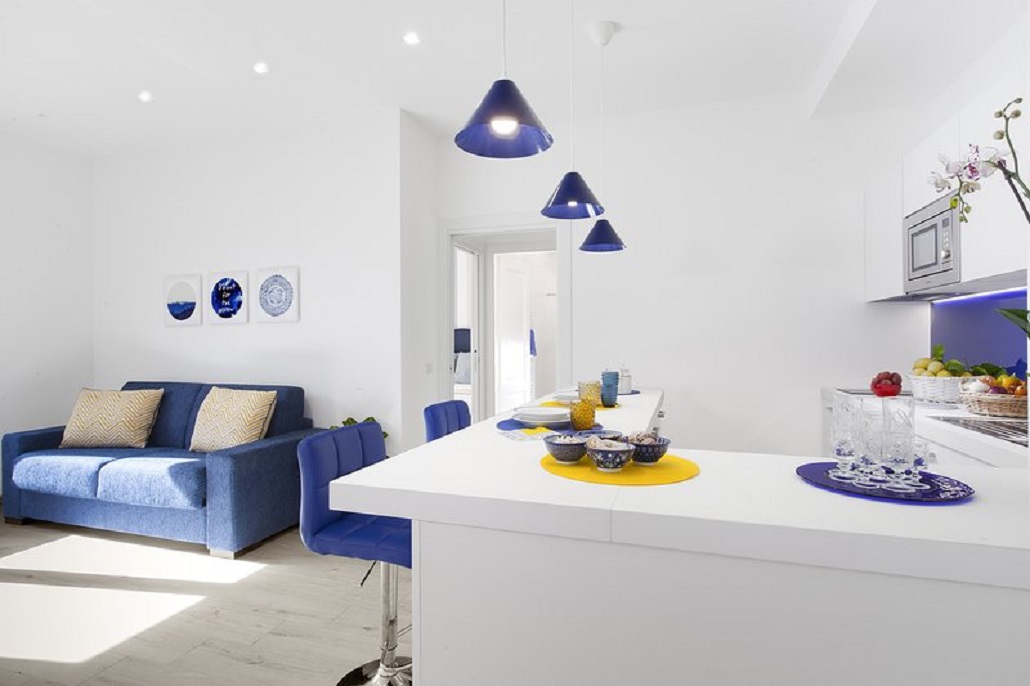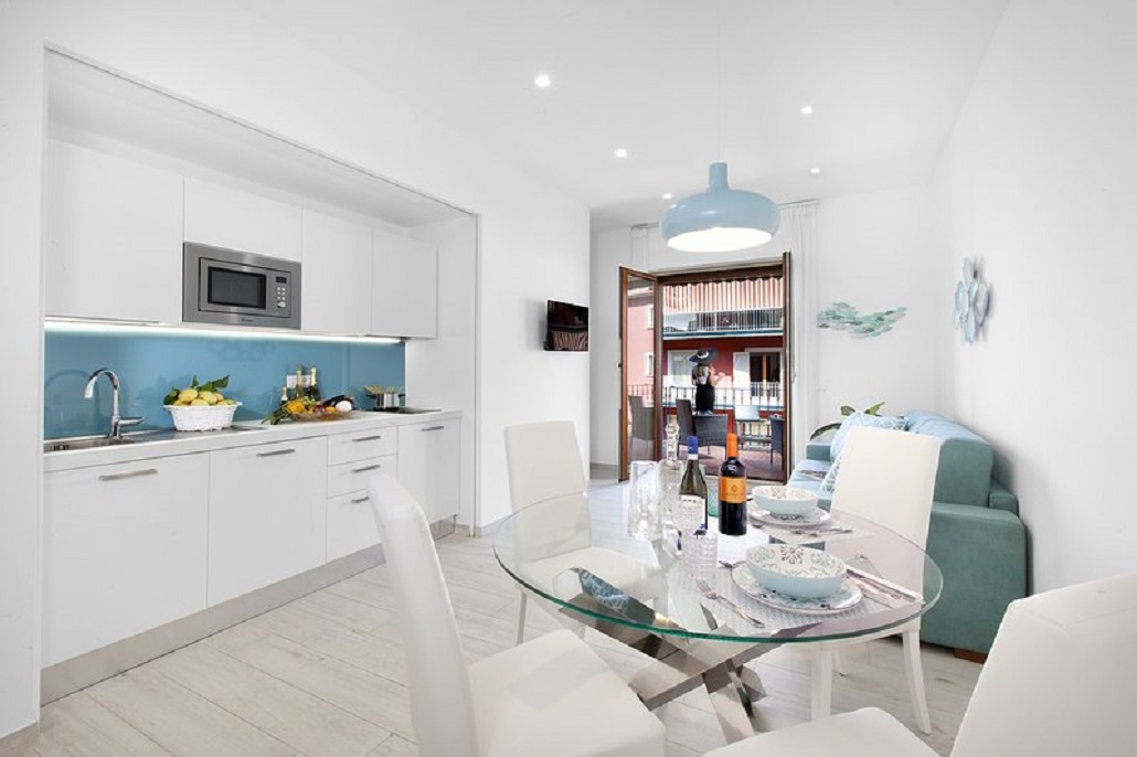 Een centraal gelegen, licht en modern appartement met terrassen in het levendige hart van Sorrento. Sara Home heeft een eenvoudig maar elegant ontwerp met witgeschilderde muren, lichte houten vloeren en eigentijds meubilair in gedurfde kleuren.