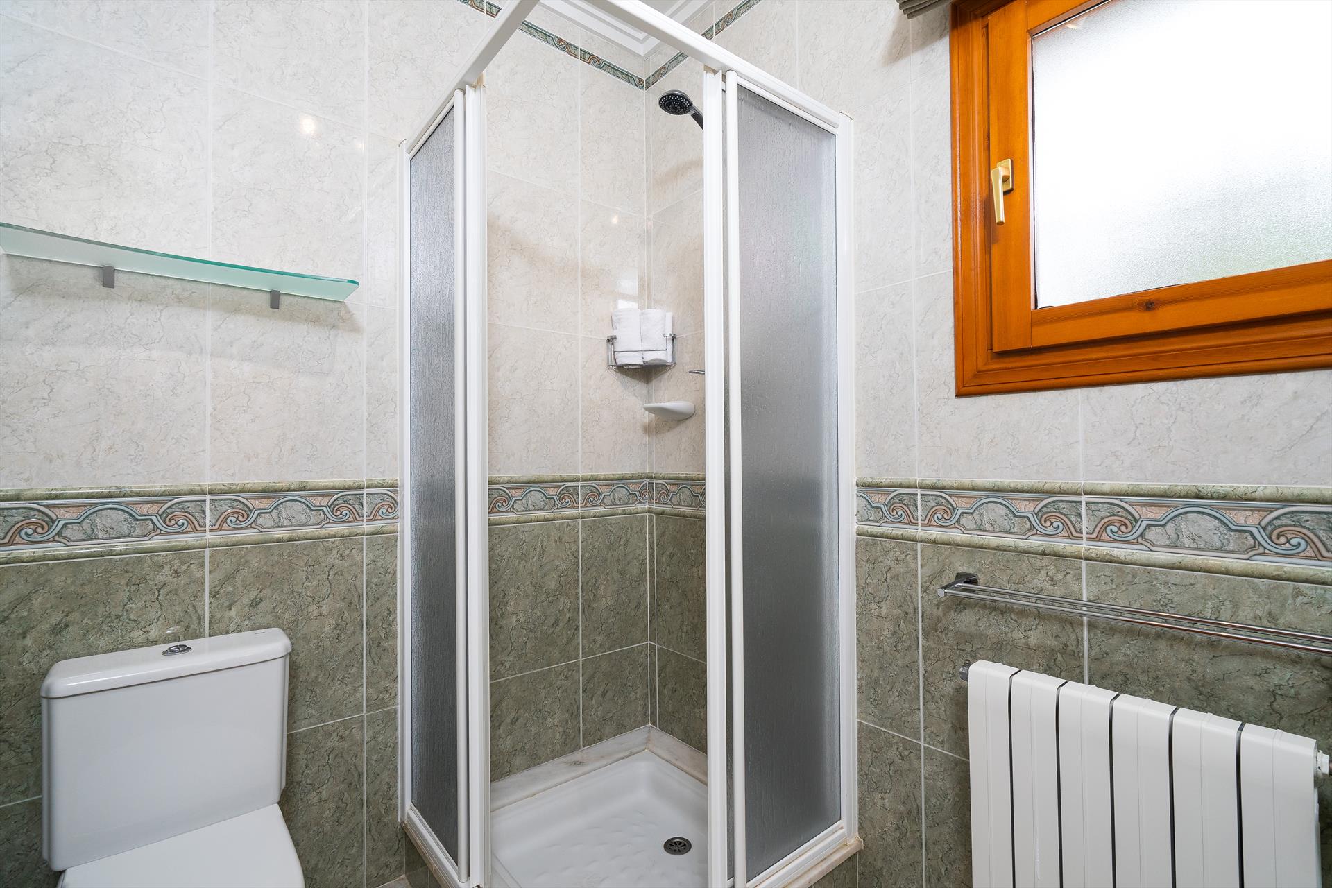 - badkamer met wastafel, douche en toilet
