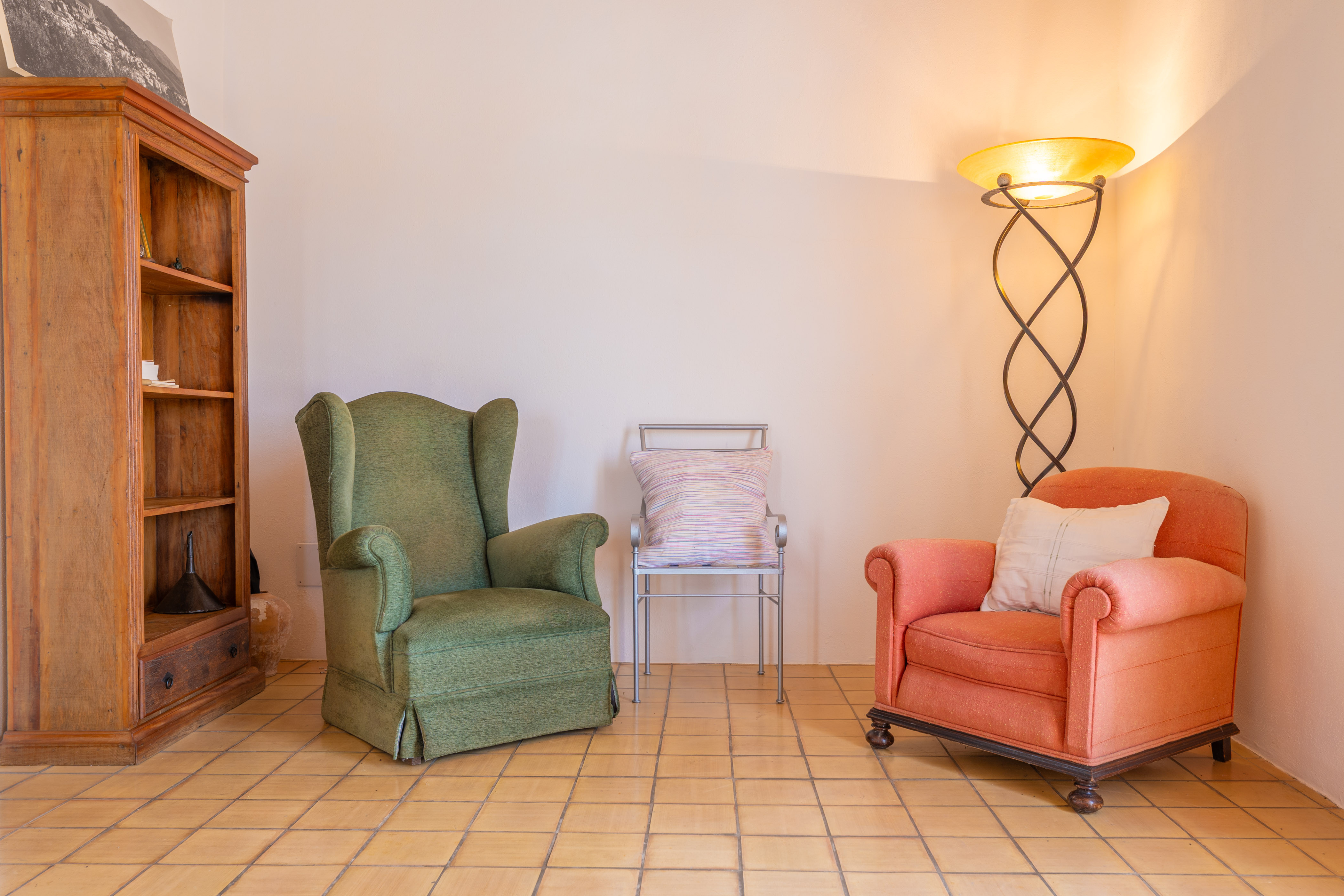 Het huis is eenvoudig en comfortabel. Het telt met alle basisvoorzieningen voor uw verblijf. We komen binnen in de woon- en eetkamer met open keuken. Daar vinden we een bank, een fauteuil, een open haard, satelliet-tv en een eettafel. De keuken werkt op gas en beschikt over een elektrische oven, een vaatwasser en ander keukengerei. Er is een wasmachine, een strijkijzer en een strijkplank. De slaapkamer heeft een tweepersoonsbed en een kledingkast. De badkamer is voor algemeen gebruik en beschikt over een douche.