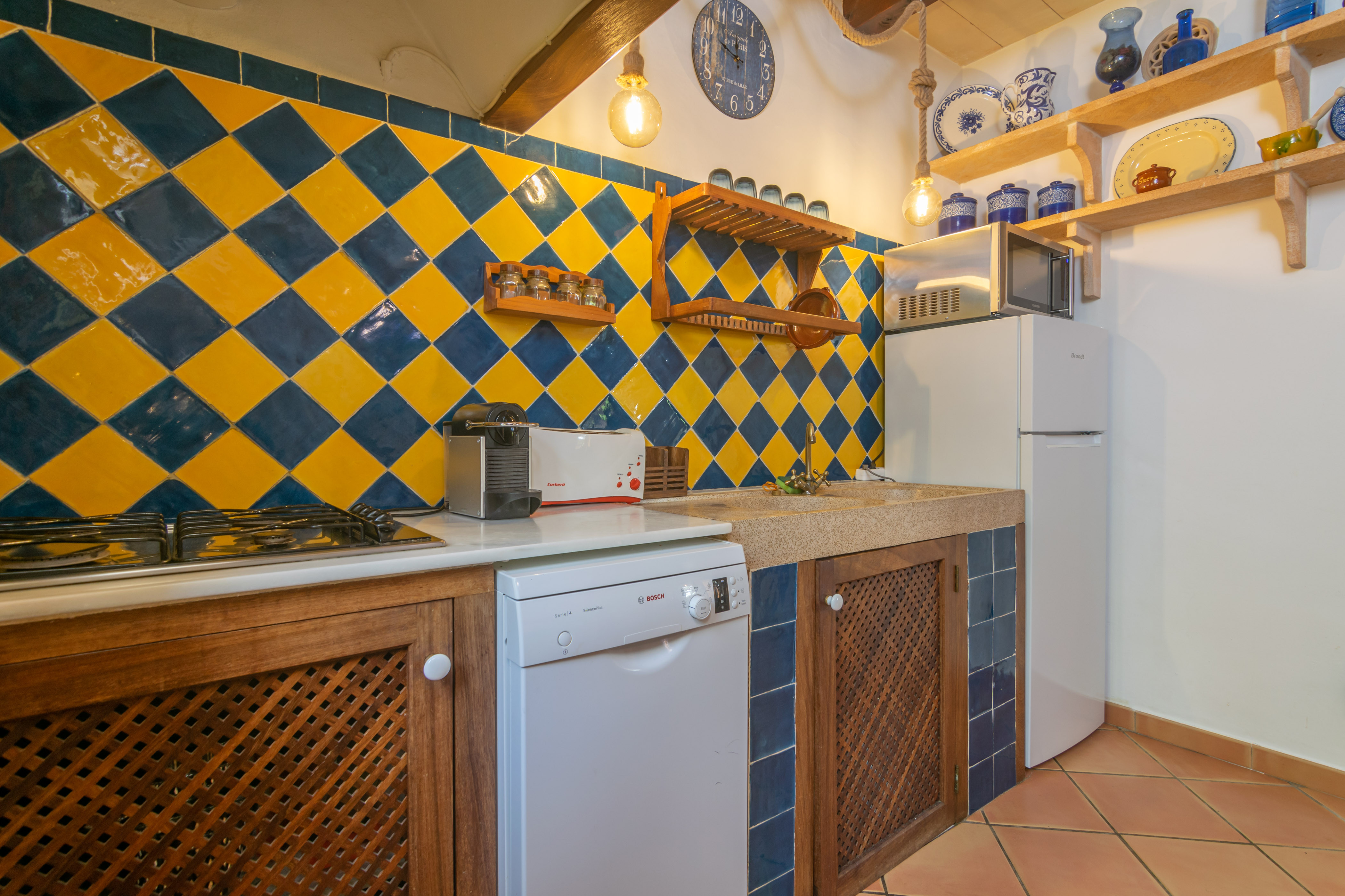 Het interieur van dit charmante gelijkvloerse huis combineert eenvoud met een traditionele stijl, waardoor een gezellige en uitnodigende sfeer ontstaat. De woonkamer is voorzien van airconditioning en satelliet-tv, terwijl de aangrenzende eetkeuken, eveneens met airconditioning, beschikt over een gasfornuis en alles wat nodig is om zelf maaltijden te bereiden.