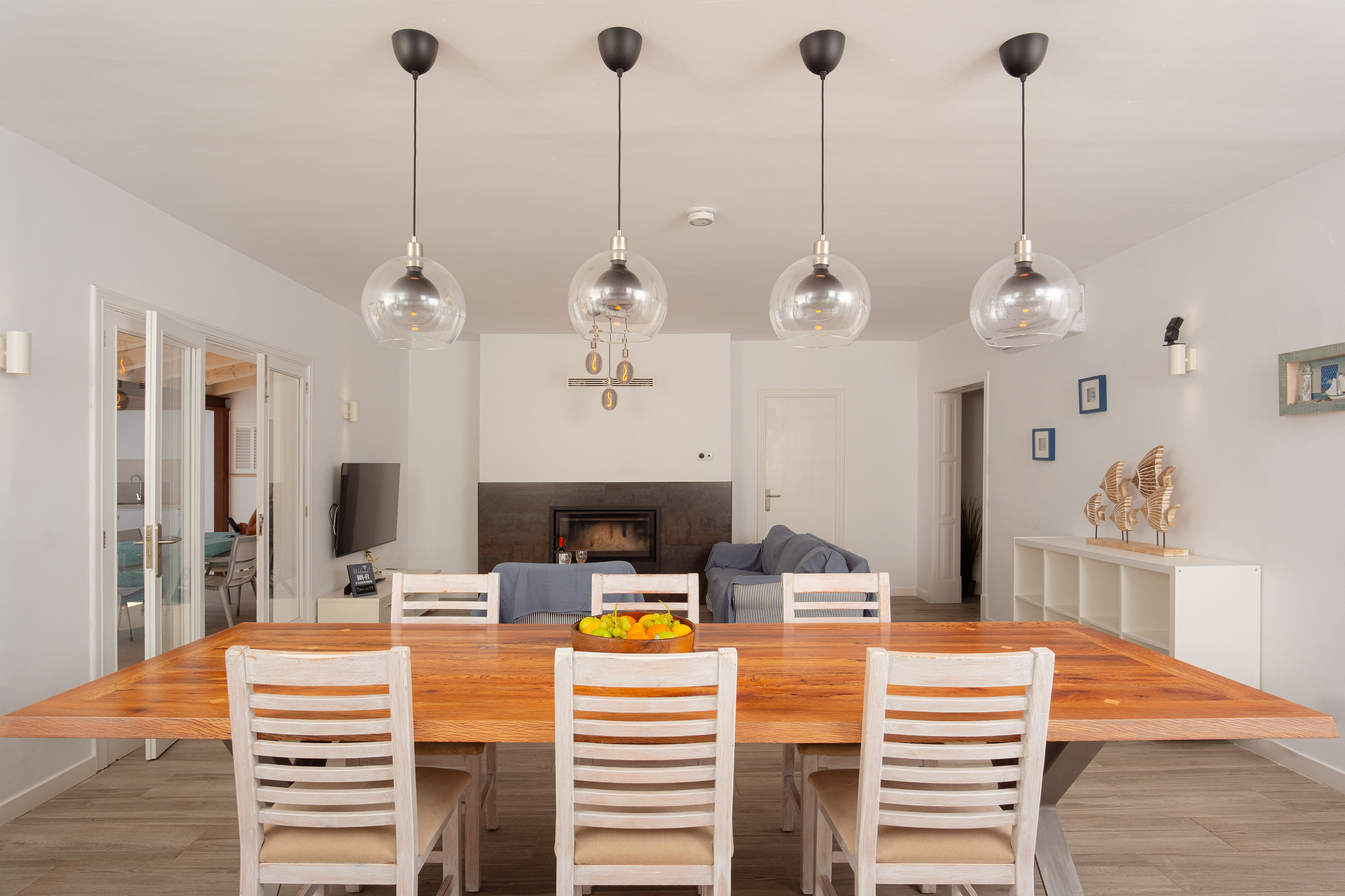 Binnen vindt u een geweldige woonkamer waar u TV-Sat kunt kijken en een dutje kunt doen terwijl u afkoelt met de airconditioning of samen luncht. De moderne en aparte keuken beschikt over een gaskookplaat en alles wat u nodig heeft om uw favoriete gerechten te bereiden. Er zijn twee badkamers met douche en drie slaapkamers in het huis. Ze zijn allemaal voorzien van een kast en een ventilator. Twee van de slaapkamers hebben een tweepersoonsbed en de laatste heeft twee aparte bedden, de laatste twee met airconditioning. Als u met uw baby reist, kunnen wij een kinderbedje en een kinderstoel klaarzetten. Op het terras vindt u de wasmachine, strijkijzer en strijkplank.