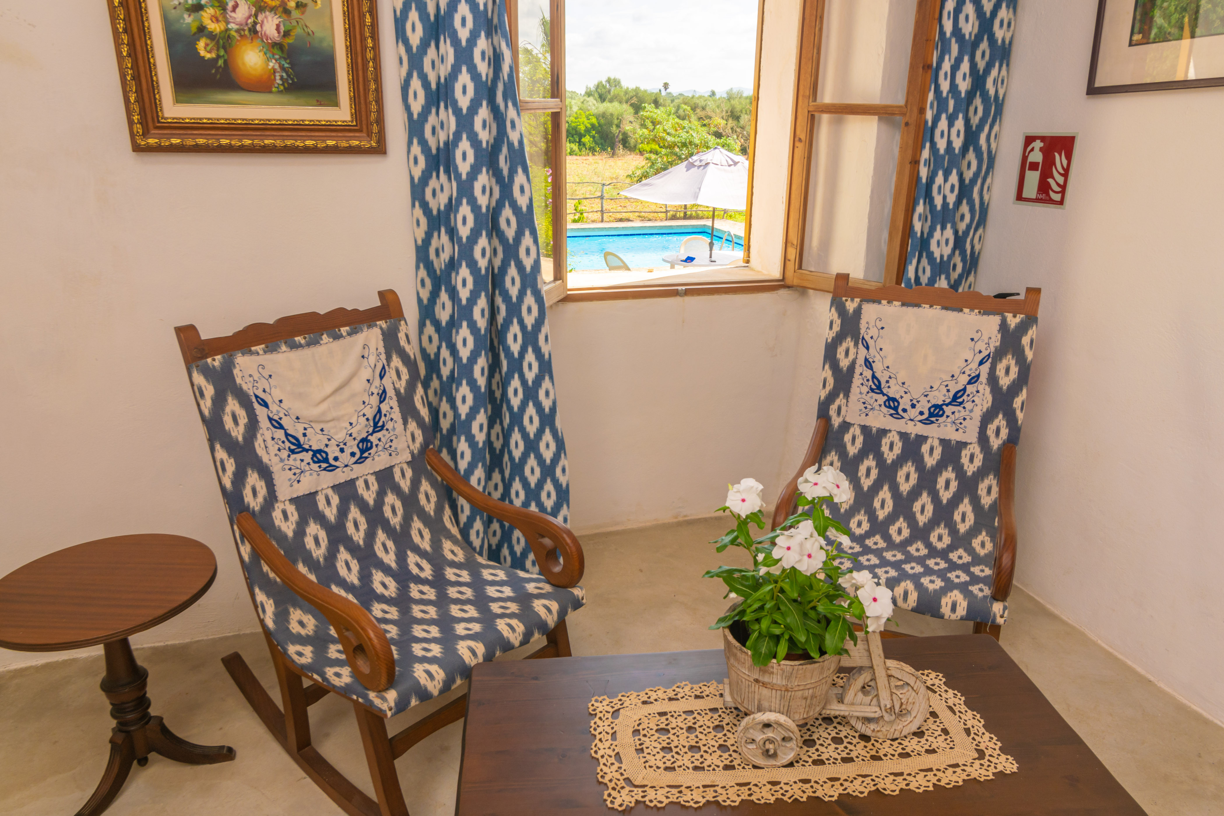 Het interieur van het pand, ontworpen in de traditionele Mallorcaanse fincastijl met stenen muren, is gemaakt om je de rust te bieden die je verdient. Je appartement beschikt over een gezellige woonkamer en een keuken uitgerust met een gasfornuis en al het nodige keukengerei om comfortabel te koken. Als het tijd is om te slapen, vind je een slaapkamer met een tweepersoonsbed en een eigen badkamer met een bad, terwijl je reisgenoten kunnen uitrusten in een andere slaapkamer met een tweepersoonsbed en een eigen badkamer met een douche. Beide slaapkamers zijn uitgerust met ventilatoren. De tweede slaapkamer heeft ook toegang tot een terras, waar je kunt genieten van een spectaculair uitzicht en rust terwijl je ontspant met je gezelschap aan een kleine tafel met twee stoelen. Een wasmachine is beschikbaar voor gebruik. Deze tweede slaapkamer is ook bereikbaar via een buitentrap. Als je met een baby reist, kunnen we een kinderbedje en een kinderstoel ter beschikking stellen.